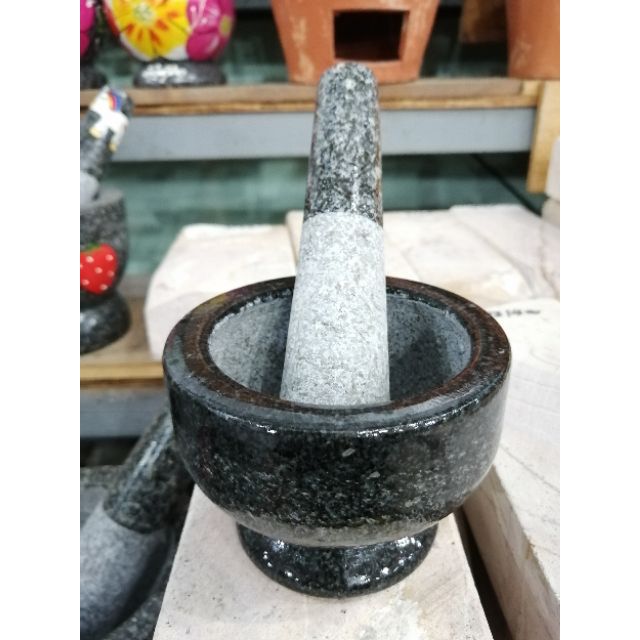 ครกหินแกรนิตดำ ‼️ทรงเกลี้ยง 4นิ้ว 🆚พร้อมสาก