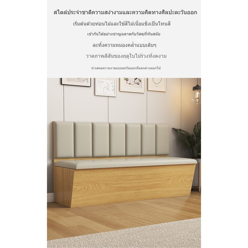 เก้าอี้ยาวไม้+เบาะรองนั่ง พร้อมที่เก็บของได้จุใจ โซฟาร้านชานม โซฟาห้องรับประทานอาหาร