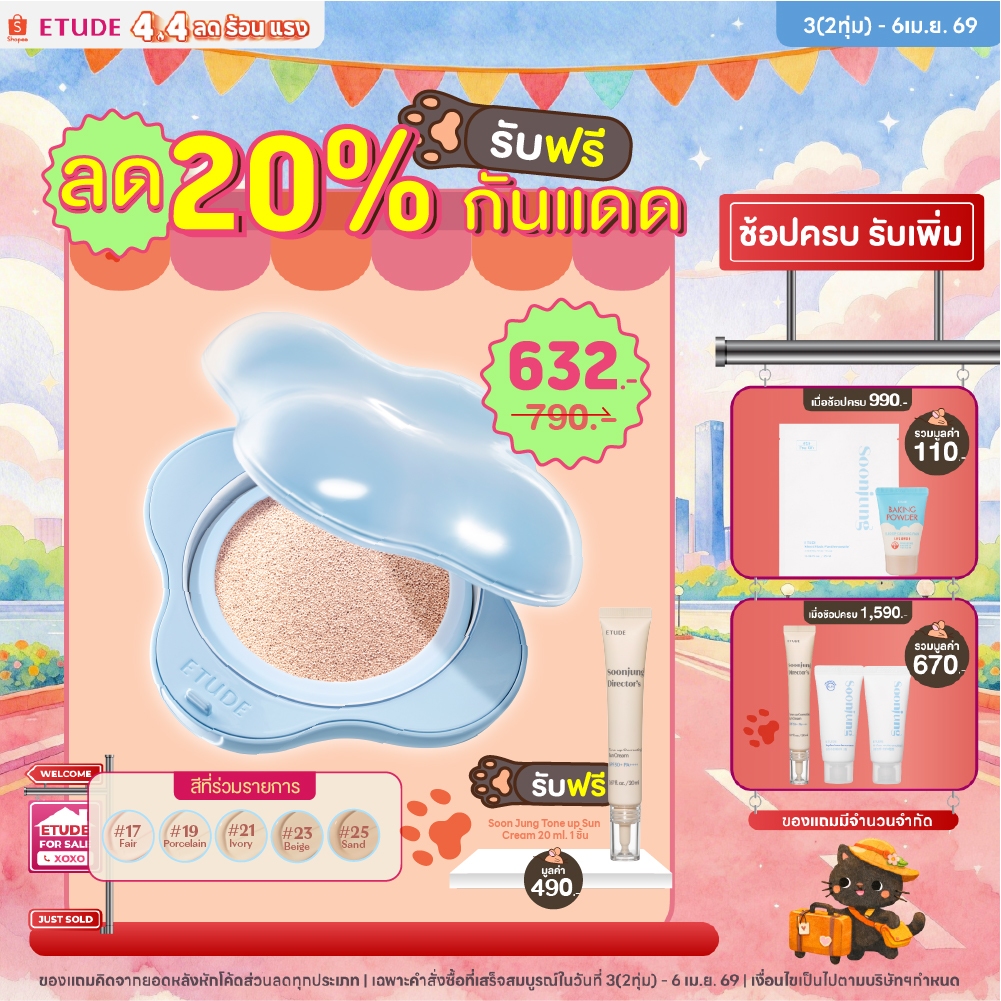 [ซื้อ 1 ลด 20% รับฟรี! กันแดด ตั้งแต่ 3(2ทุ่ม)-6 เม.ษ.]ETUDE Cloud Filter Cushion SPF42 PA+++ อีทูดี้ คุชชั่นก้อนเมฆ