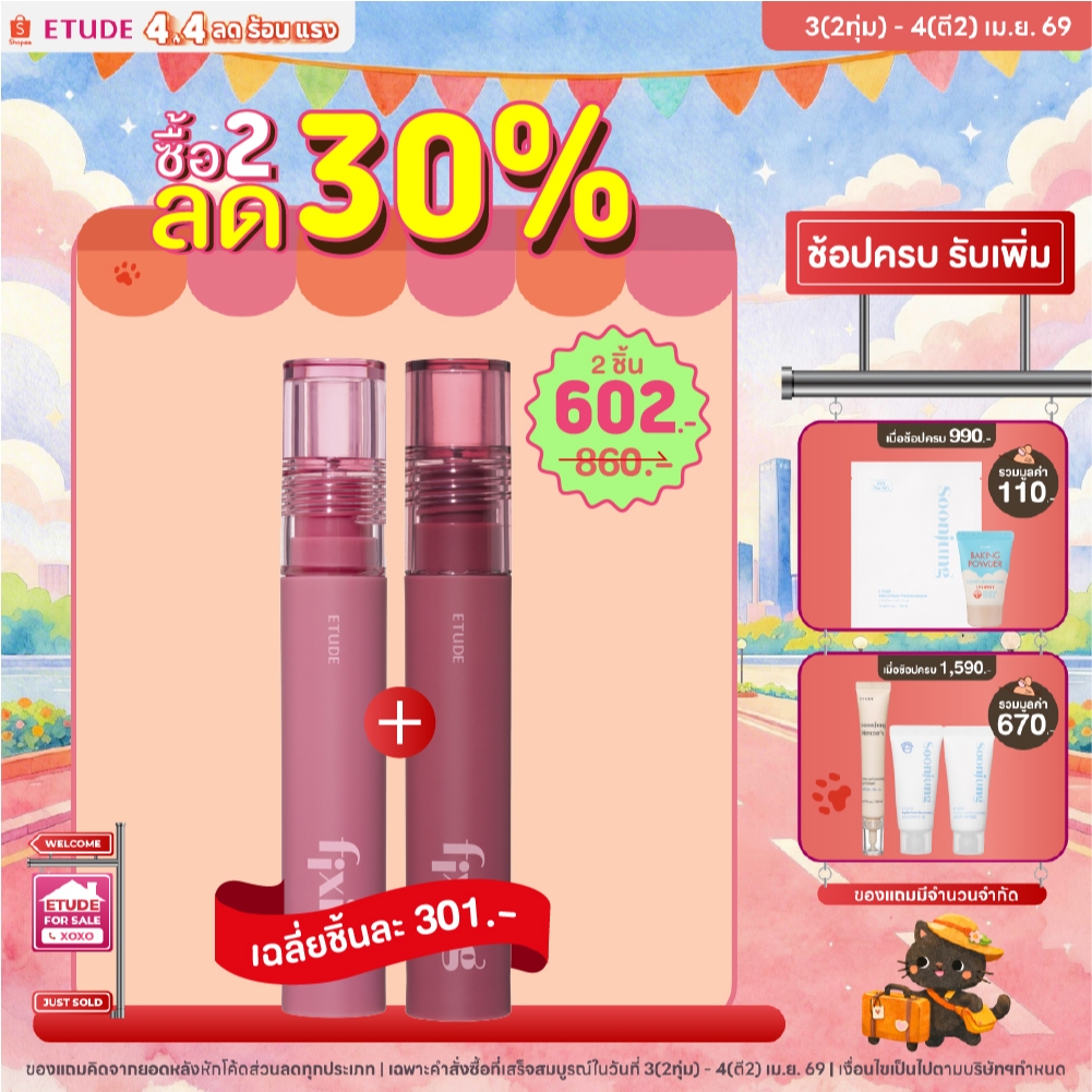 [ซื้อ 2 ลด 30% เฉพาะ 3(2ทุ่ม)-4(ตี2) เม.ษ.] ETUDE Fixing Tint (4 g) อีทูดี้ ลิปทินต์เนื้อแมตต์ ติดทนไม่ติดแมสก์