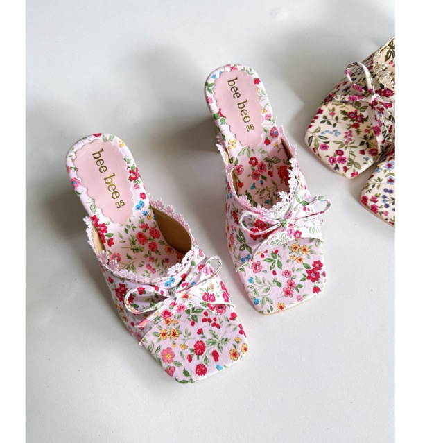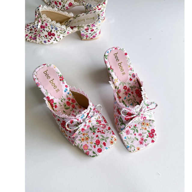 รองเท้าส้นสูงลายดอกbeebee ผลิตโดยช่างไทย🇹🇭ไซส์ 36-40