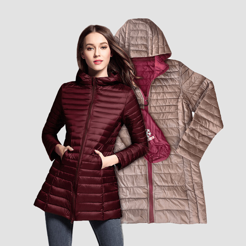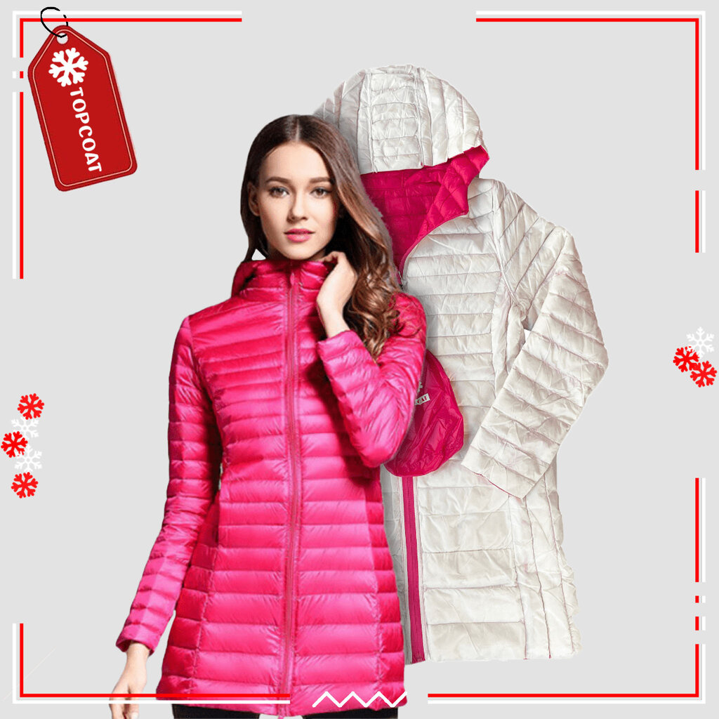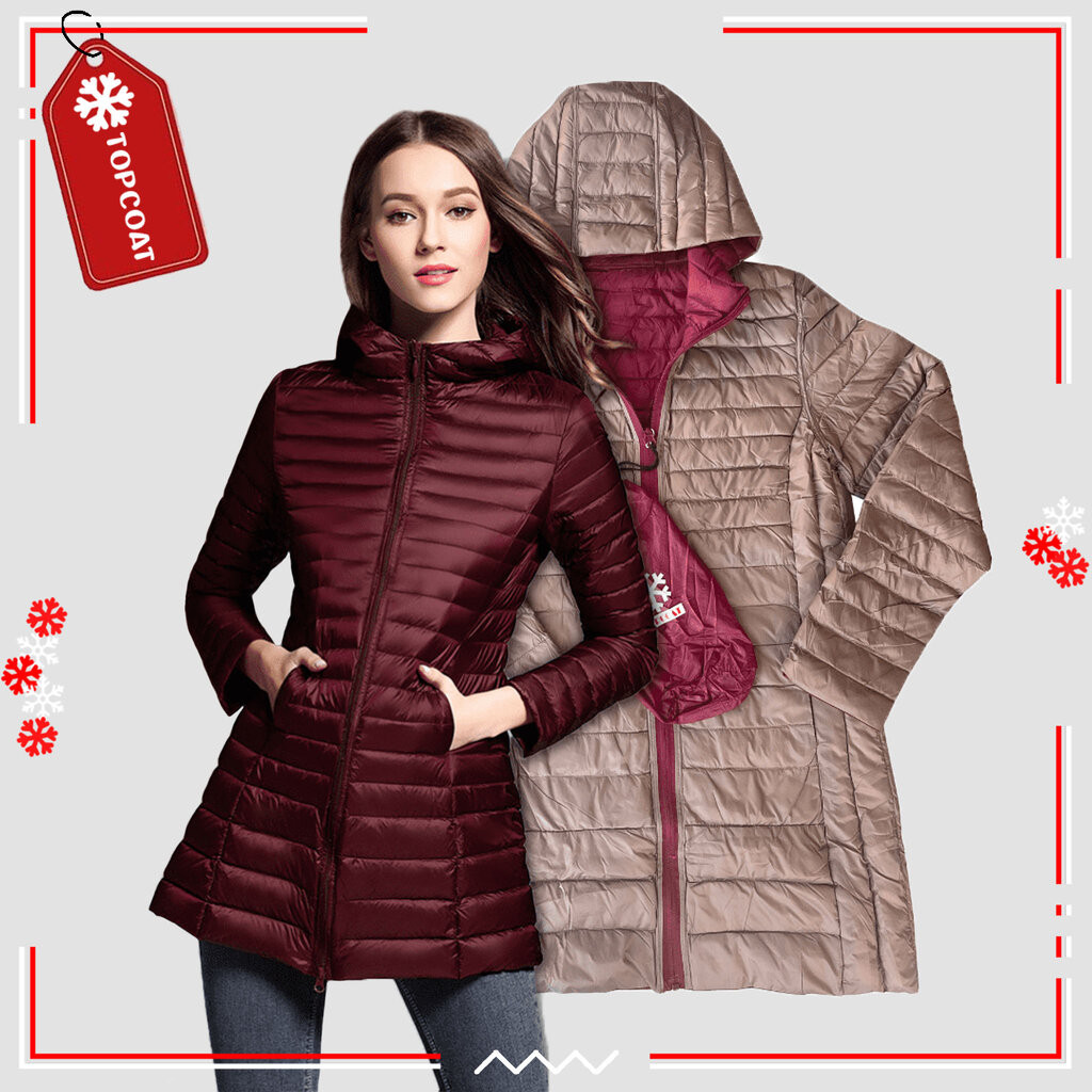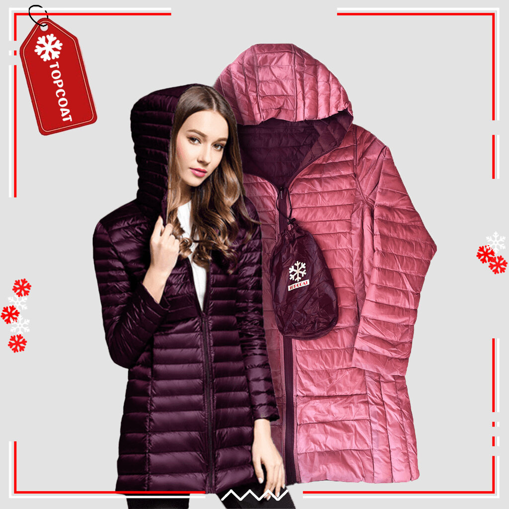 TOPCOAT เสื้อกันหนาว ใส่ได้ 2ด้าน เสื้อกันหนาวขนเป็ด โค้ทขนเป็ด มีถุงผ้า มีฮูด (1 ตัว) Size : S-6XL
