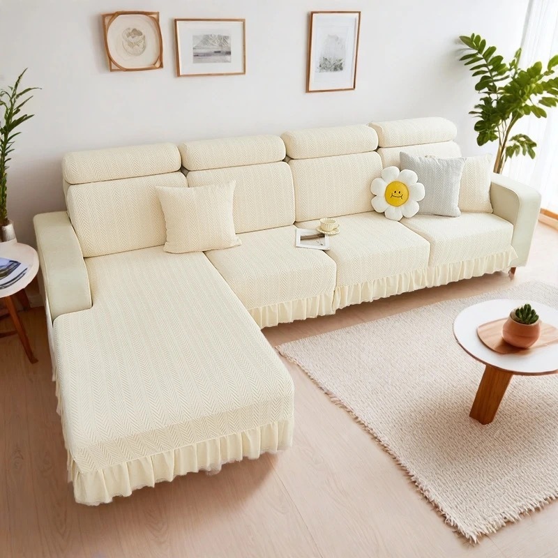ผ้าคลุมโซฟารวมทุกอย่างผ้าคลุมสากลกระโปรงลูกไม้เรียบง่ายทันสมัยยืดหยุ่นผ้าคลุมผ้ากันฝุ่นผ้าคลุมโซฟา