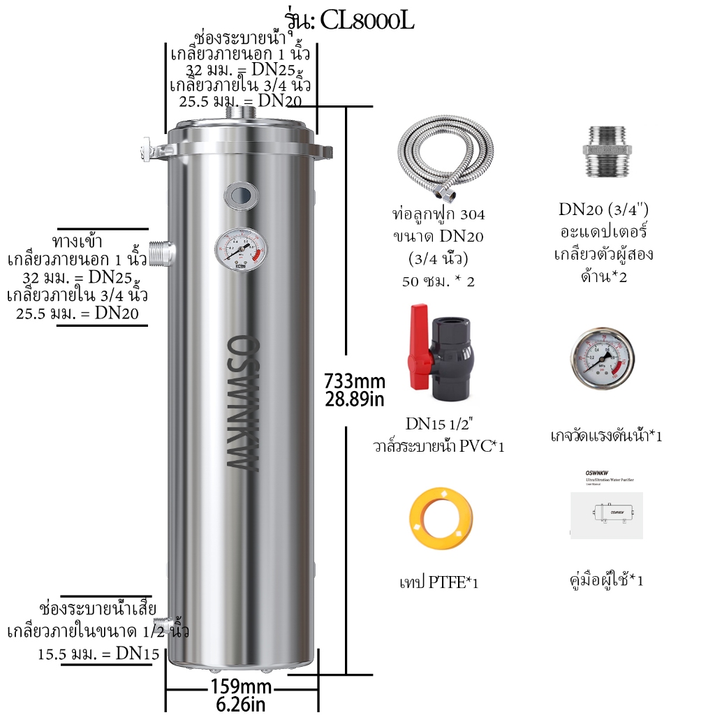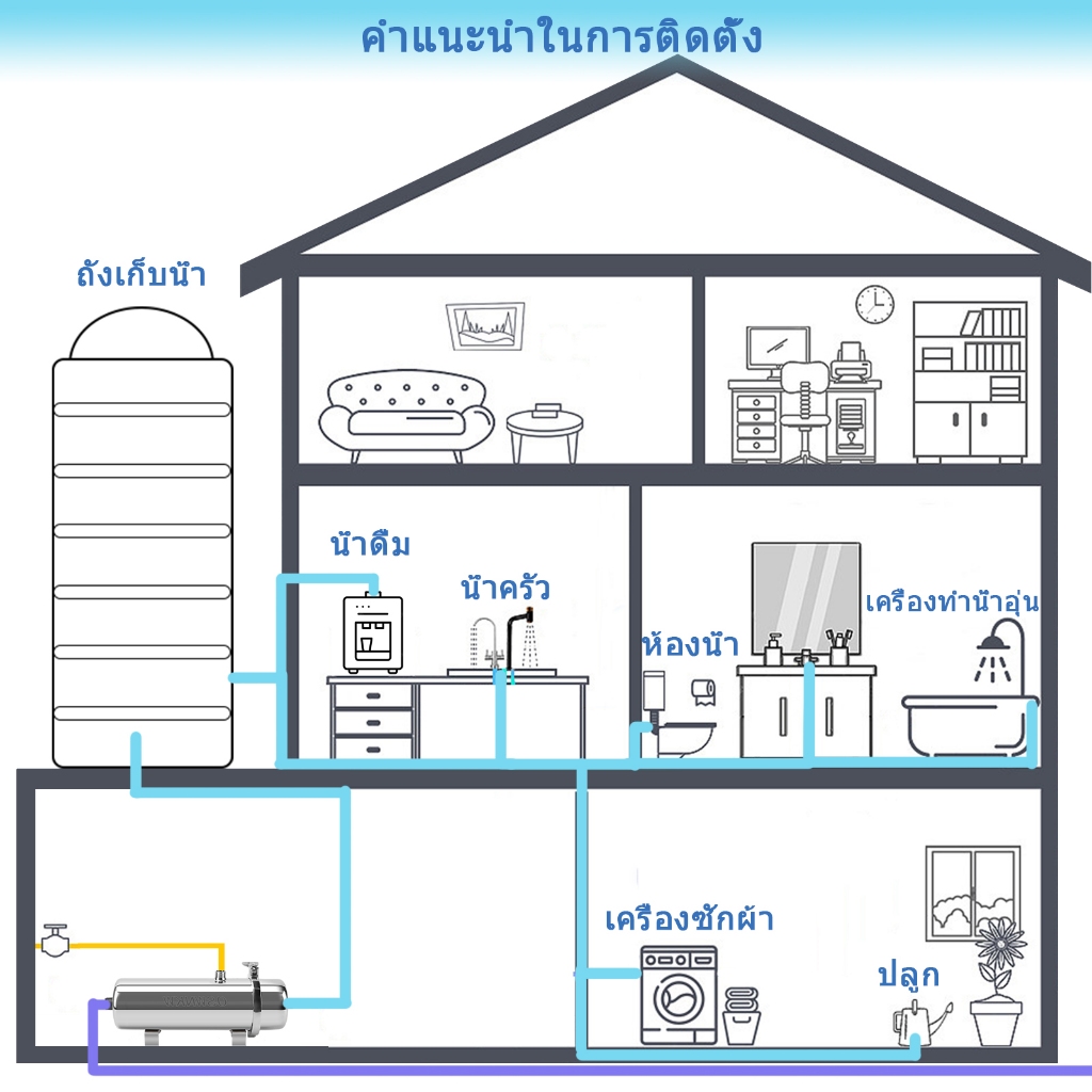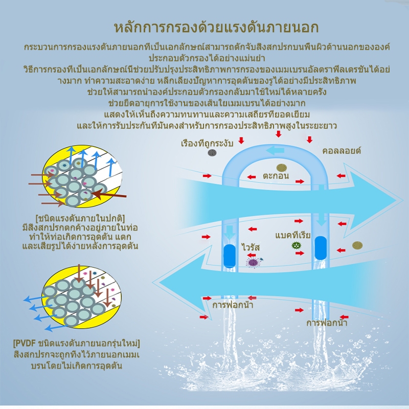 PVDF เครื่องกรองน้ำทั้งบ้าน, เครื่องทำน้ำเย็น 0.01um, อายุการใช้งานมากกว่า 5 ปี