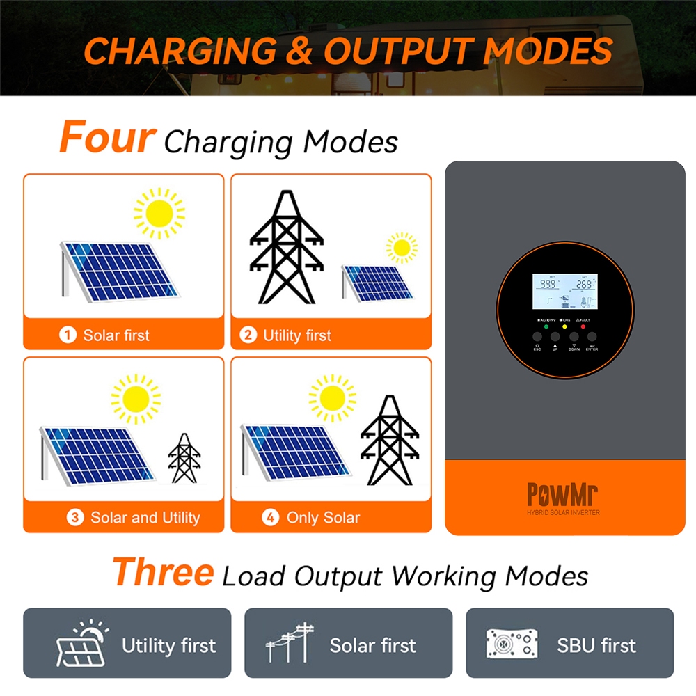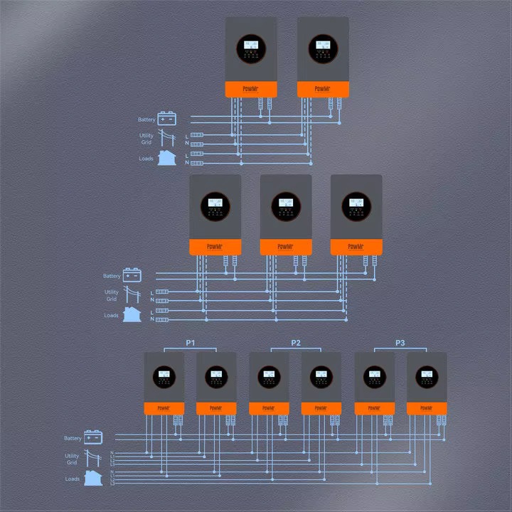PowMr 6200W Hybridอินเวอร์เตอร์ 220V Pure Sine Waveอินเวอร์เตอร์พลังงานแสงอาทิตย์ 50Hz/60Hzในตัว 120A MPPT Solar Controllerระบบ 48Vสามารถเชื่อมต่อได้ถึง 9 หน่วยในขนาน