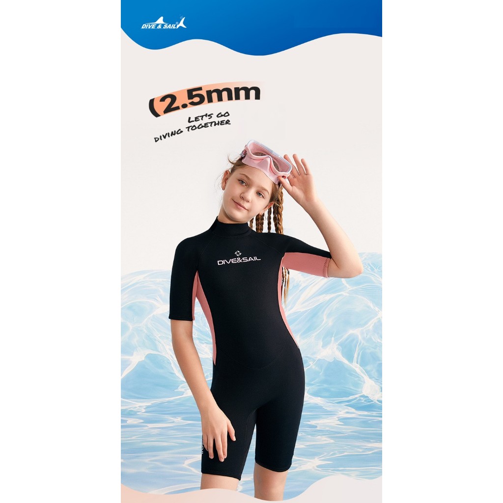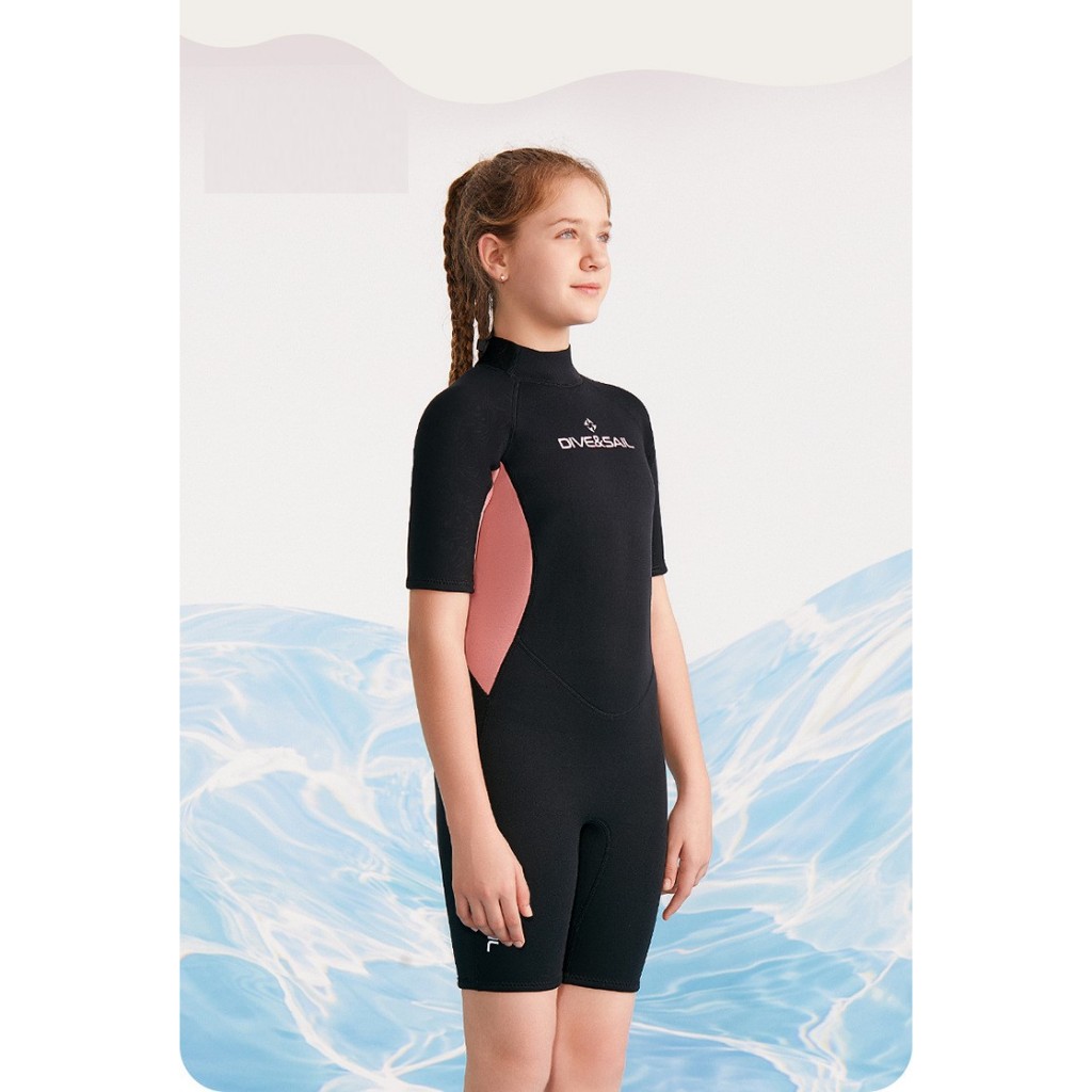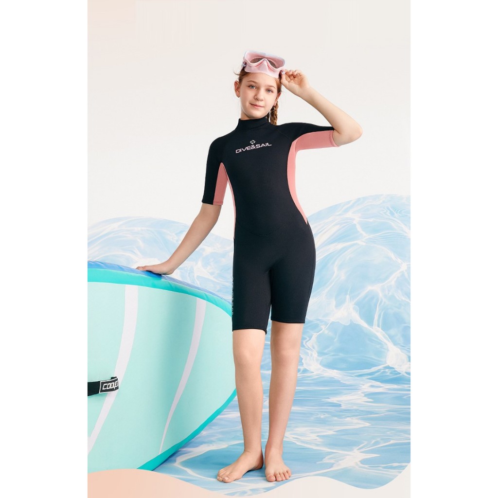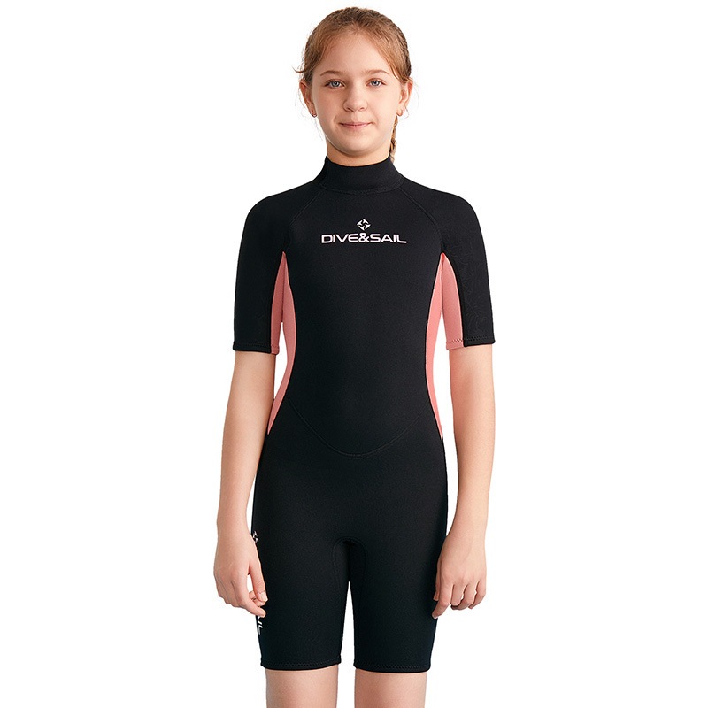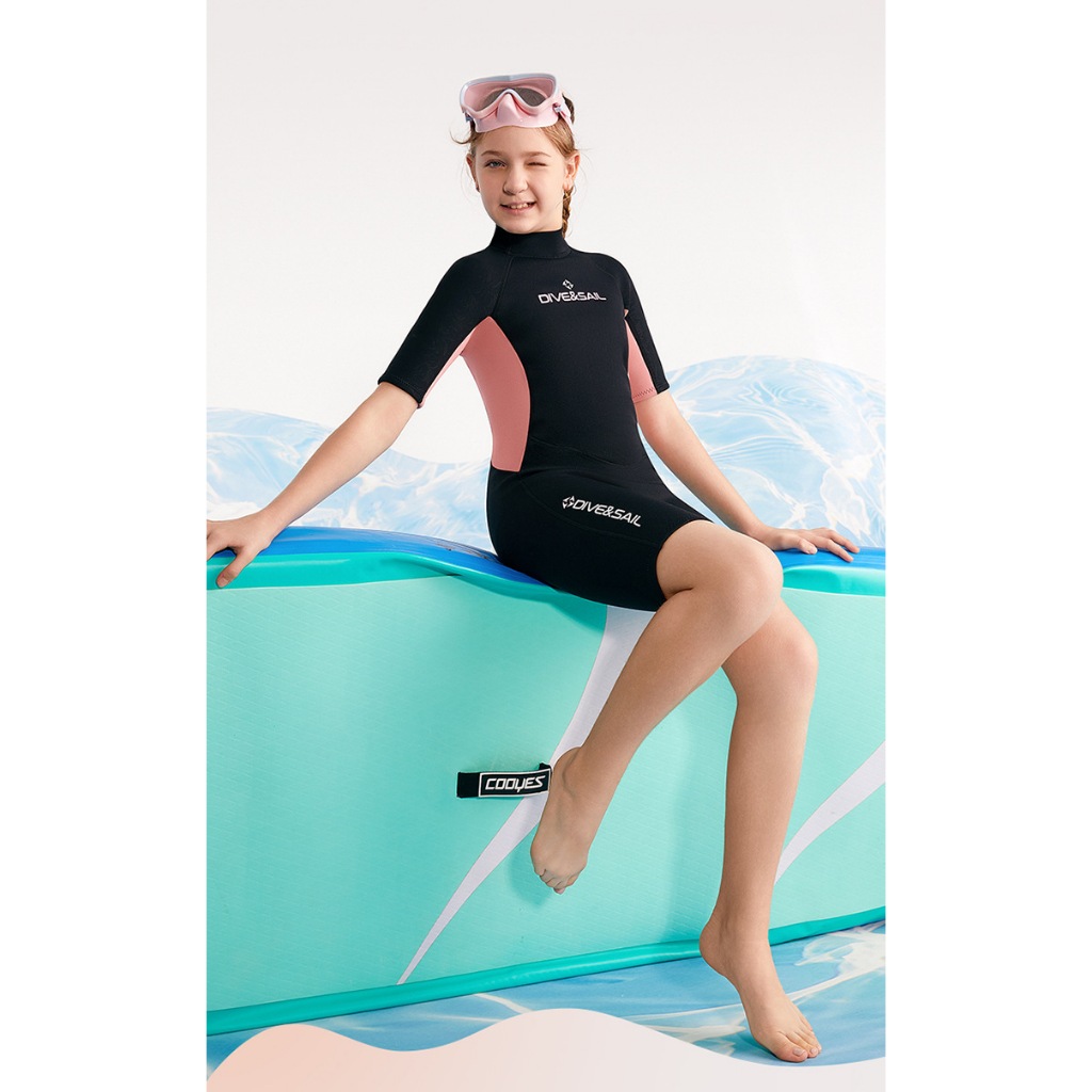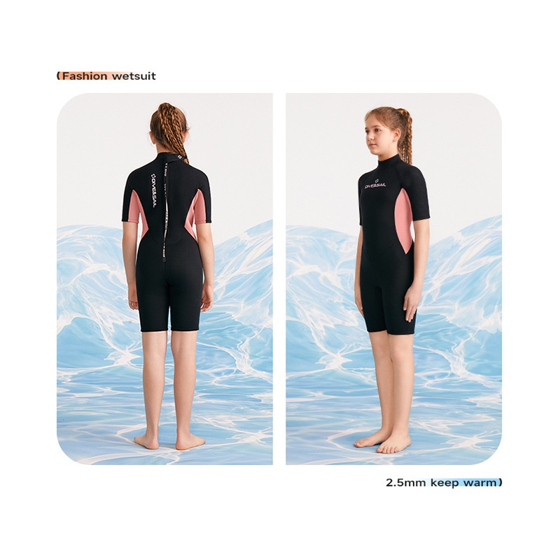 (แถมหมวก)ชุดว่ายน้ำเด็กหญิง ของเด็กโต เก็บอุณหภูมิ 2.5MM เด็กโต G.Oดำ-โอรส สั้น