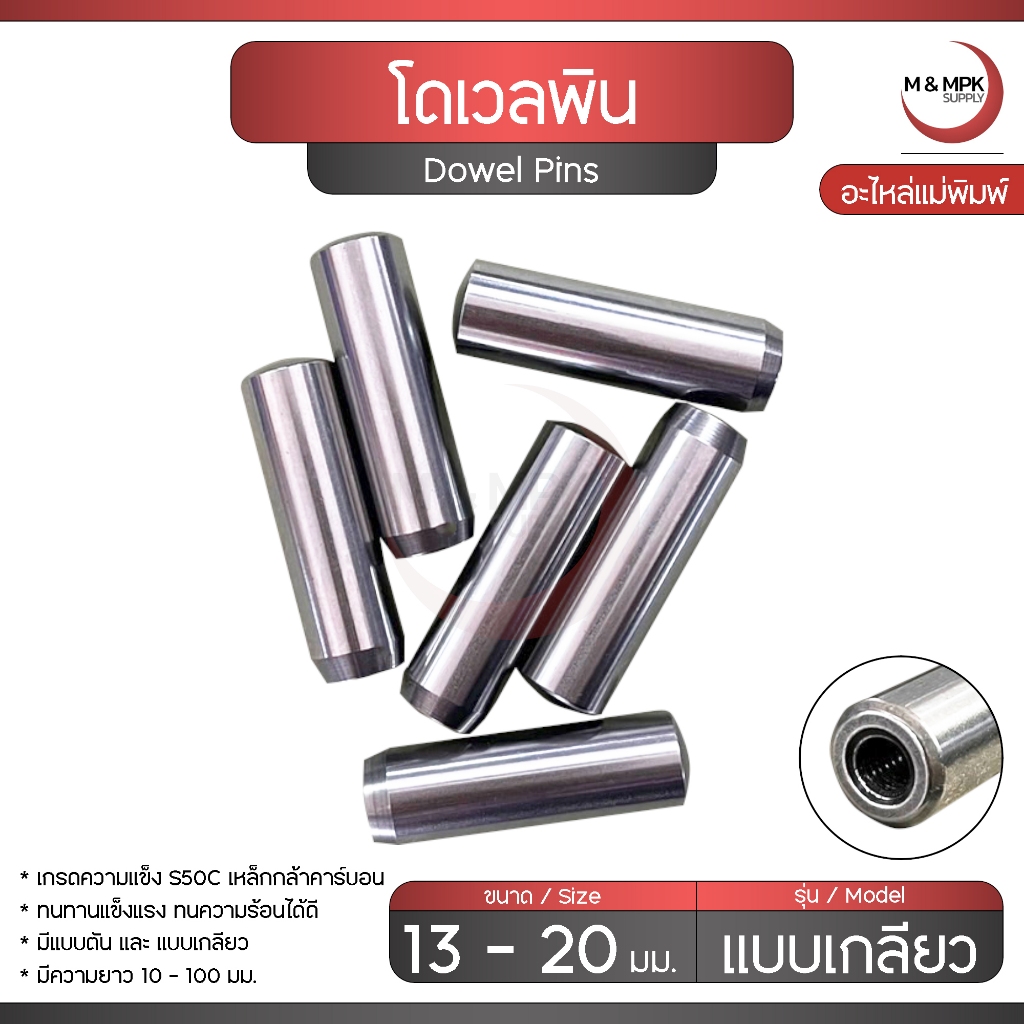 Dowel pins โดเวลพิน แบบเกลียว ขนาด 13 - 16 - 20 มม. สลักกลม หมุดพิน ปิ๊น แกนเดือย น็อกพิน อะไหล่งานแม่พิมพ์