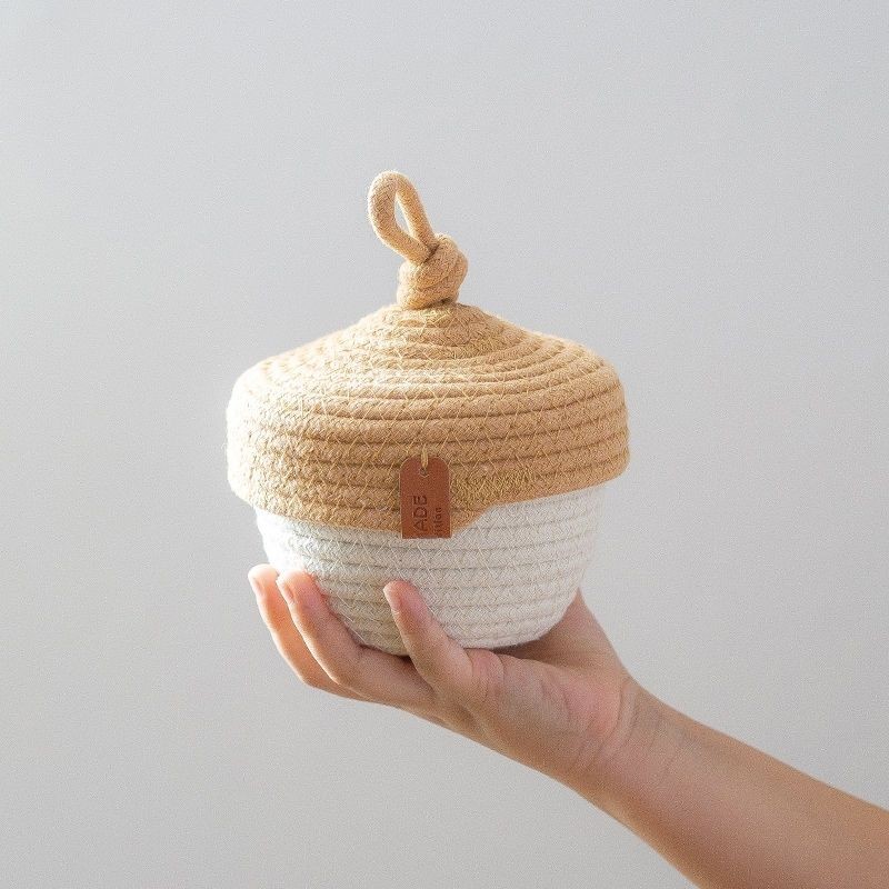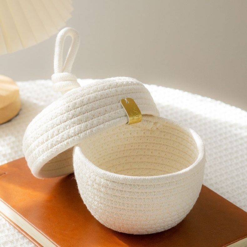 [ส่วนลด] มินิถั่วตะกร้าเก็บทางเข้าที่สําคัญตะกร้าเก็บเครื่องประดับสร้อยข้อมือเล่นกล่องเก็บผ้าฝ้ายสตริงแบบพกพาที่มีฝาปิด
