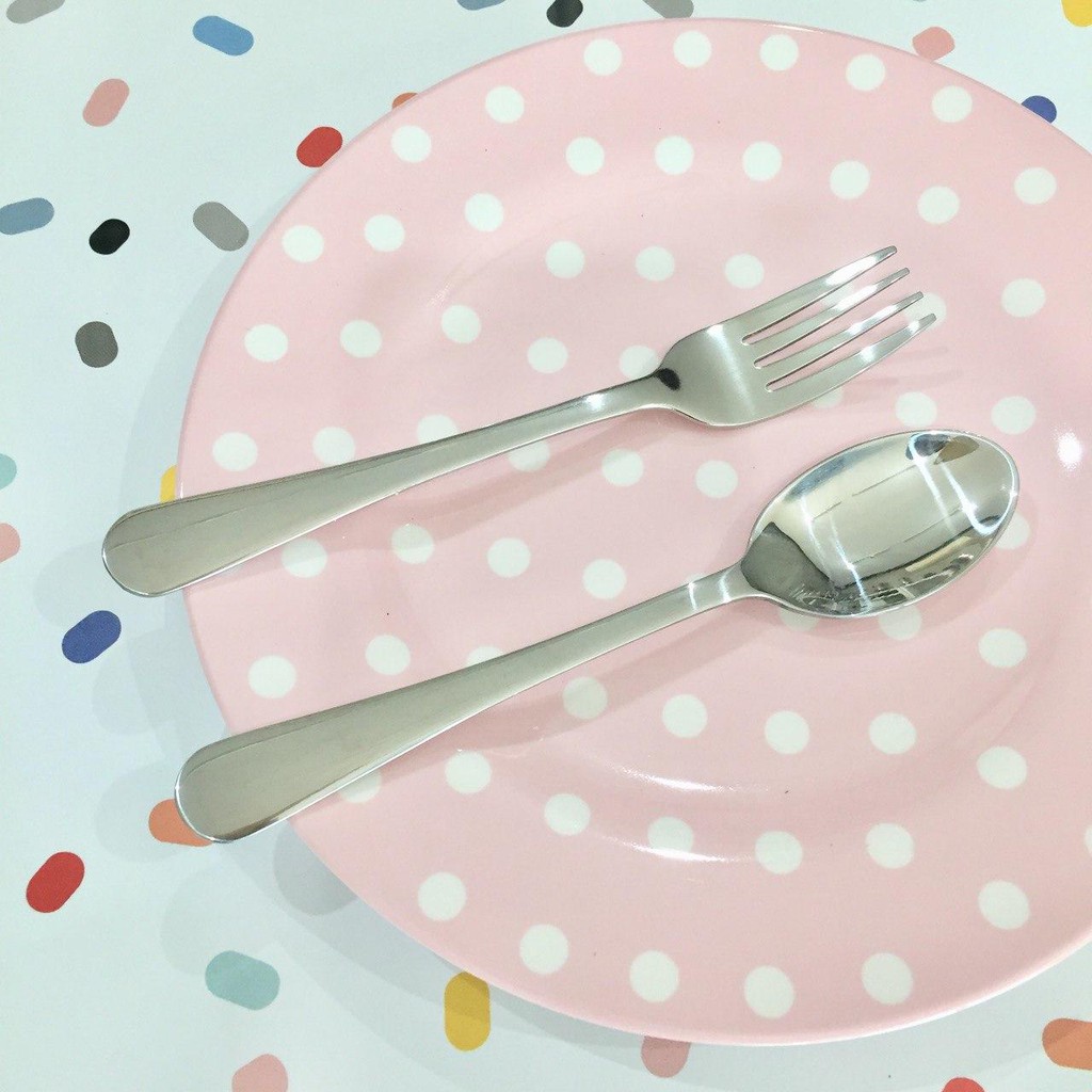 TwinFish 4คู่ ช้อนส้อมหวานสแตนเลส ช้อนส้อมสแตนเลส ช้อนส้อมขนมหวาน เด็กอนุบาลใช้ได้ รหัส77
