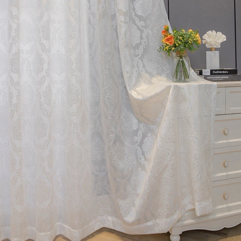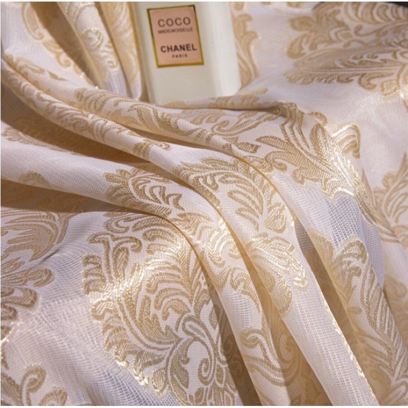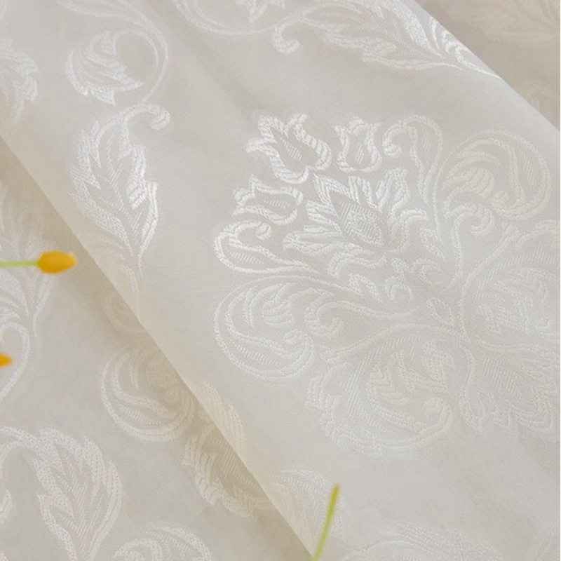 ผ้าม่านโปร่งแสงลายหลุยส์ ประตู หน้าต่าง ผ้าเนื้อหนามีน้ำหนักทิ้งตัวบังตาได้ดี