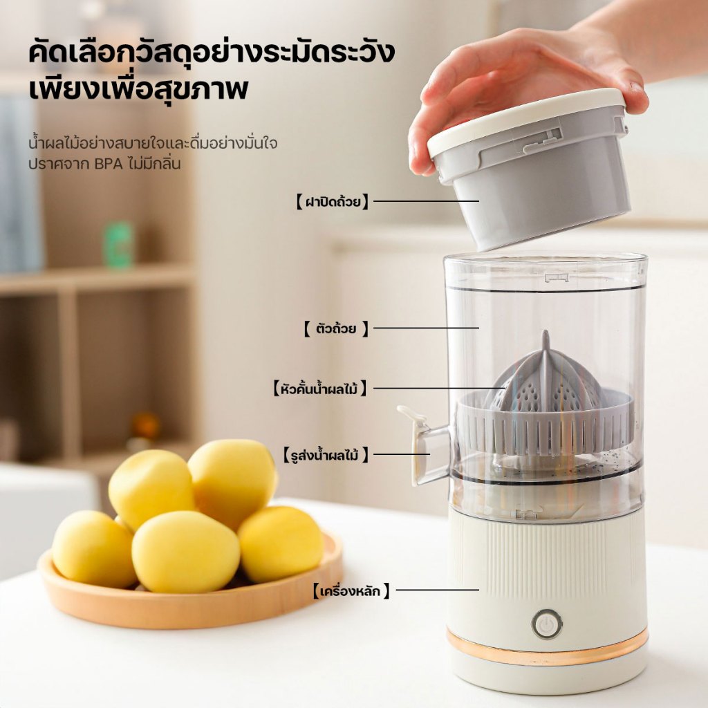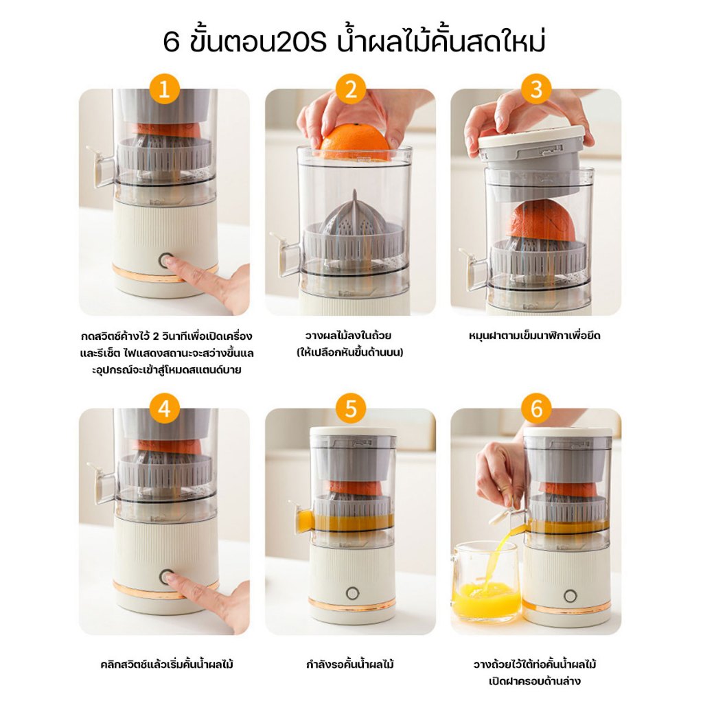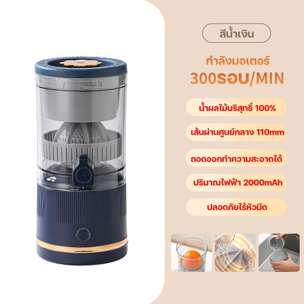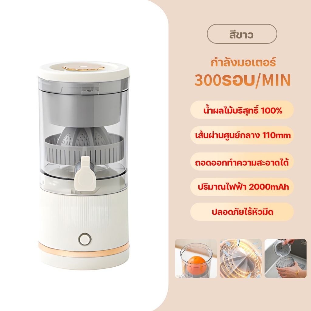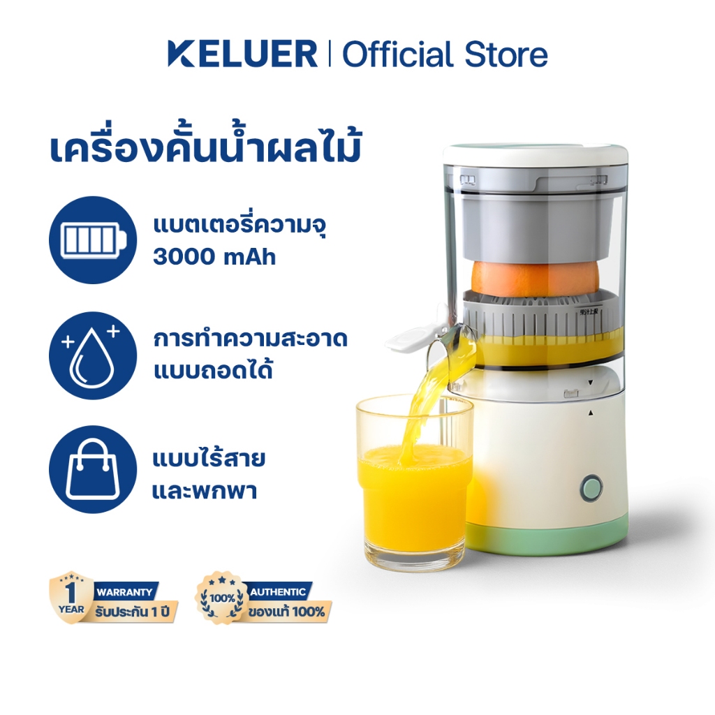 Keluer เครื่องคั้นน้ำผลไม้ แยกกาก เครื่องคั้นน้ำส้มไฟฟ้า เครื่องคั้นน้ำะนาว 2000mAh การชาร์จประเภท C แบบพกพา ไร้สาย