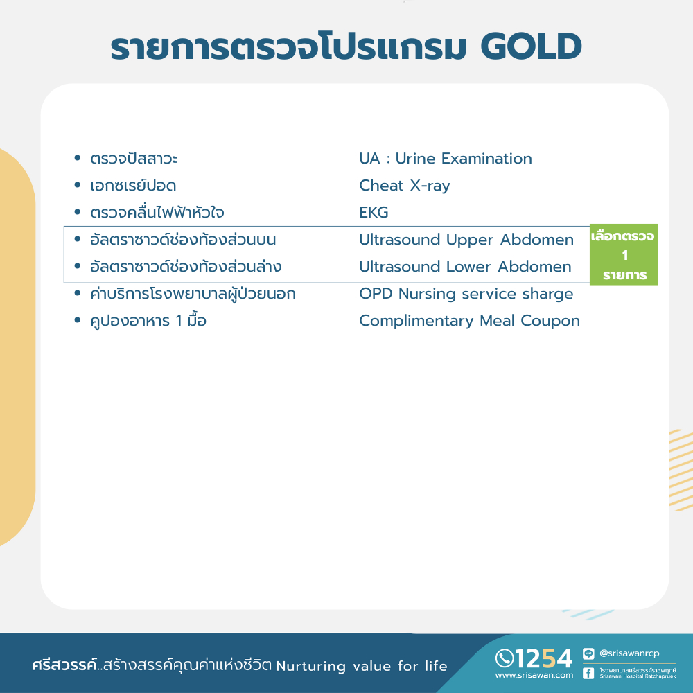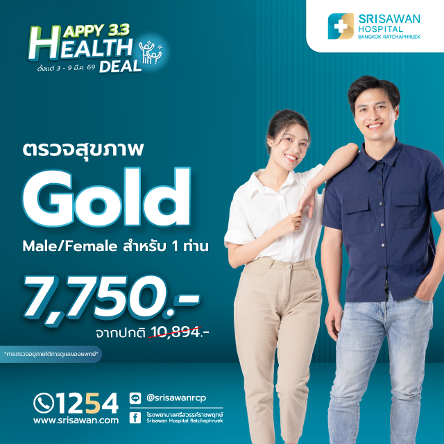 [E-Coupon] โปรแกรมตรวจสุขภาพแผน GOLD ตรวจ 31 รายการ (อายุ 30-40 ปี) ตรวจสุขภาพผู้หญิงและผู้ชาย - รพ.ศรีสวรรค์ ราชพฤกษ์