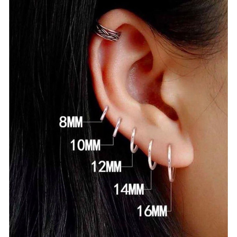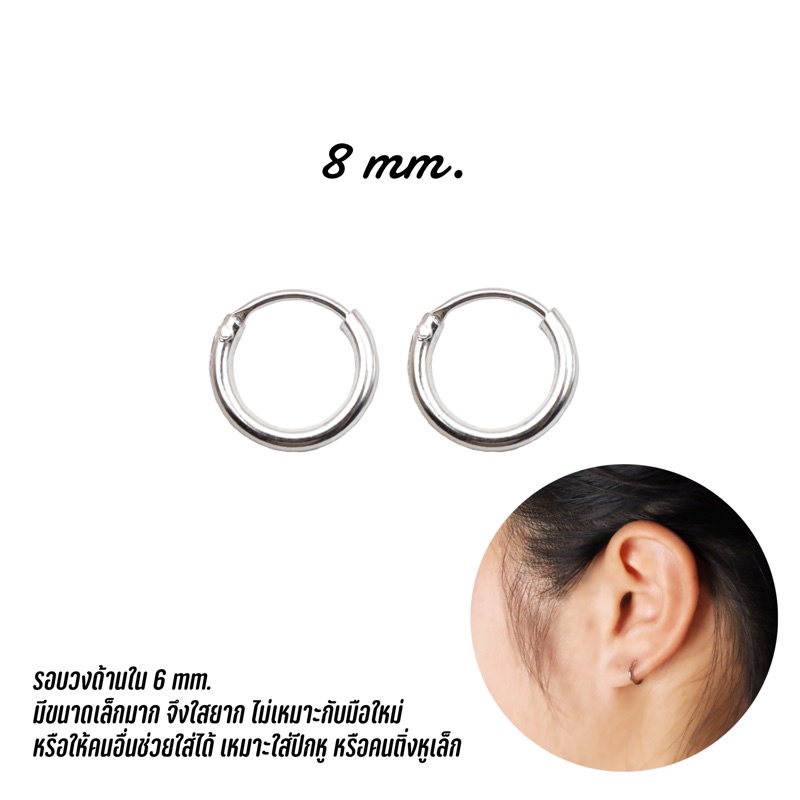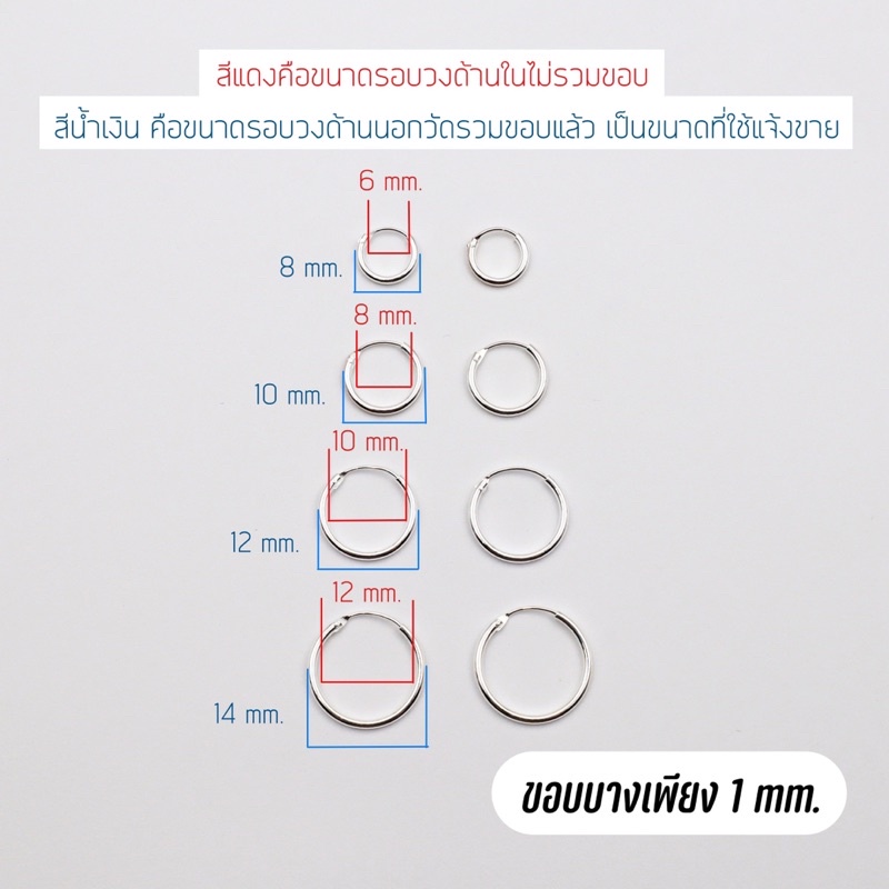 WFH ต่างหูห่วงเล็ก ขอบบาง 1 mm. สีเงิน 8-14 mm.