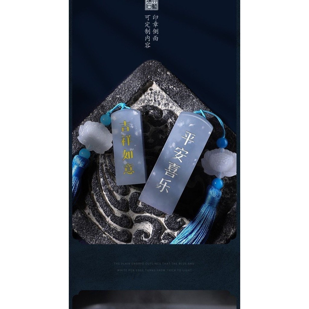 ตราประทับชื่อหินแช่แข็งสีฟ้าตราประทับการประดิษฐ์ตัวอักษรส่วนบุคคลของขวัญวันเกิดวันวาเลนไทน์โบราณและตราประทับหยกแกะสลักสไตล์ญี่ปุ่น t504