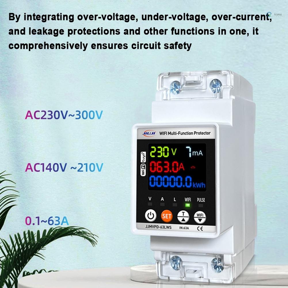 Tuya WiFi อัตโนมัติ Reclosion Protector อัจฉริยะ Circuit Breaker เฟสเดียวดิจิตอลจอแสดงผล Reclosing สวิทช์ปรับแรงดันไฟฟ้า Current การรั่วไหลอุปกรณ์ป้องกัน Kilowa