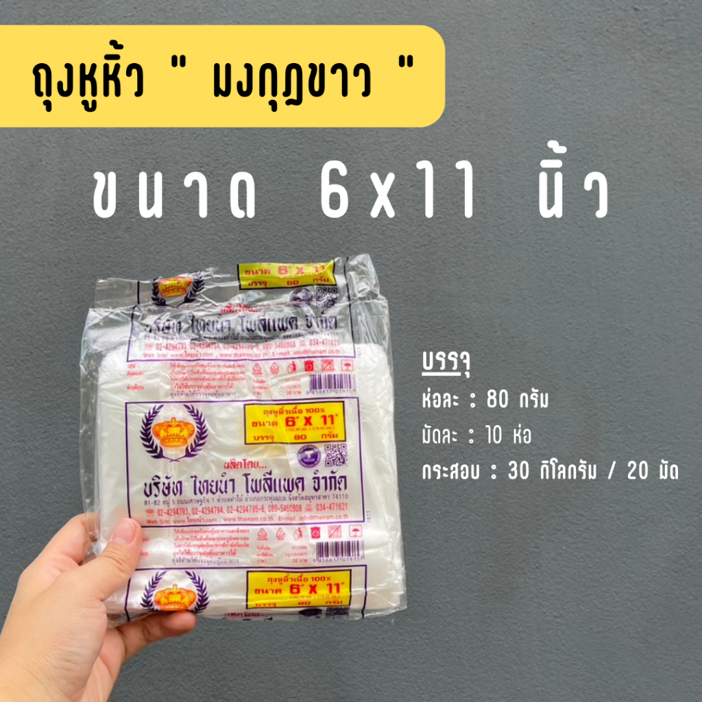 [ยกกระสอบ] ถุงหิ้วพลาสติก บาง ตรามงกุฏ 6x11 นิ้ว - 20 มัด