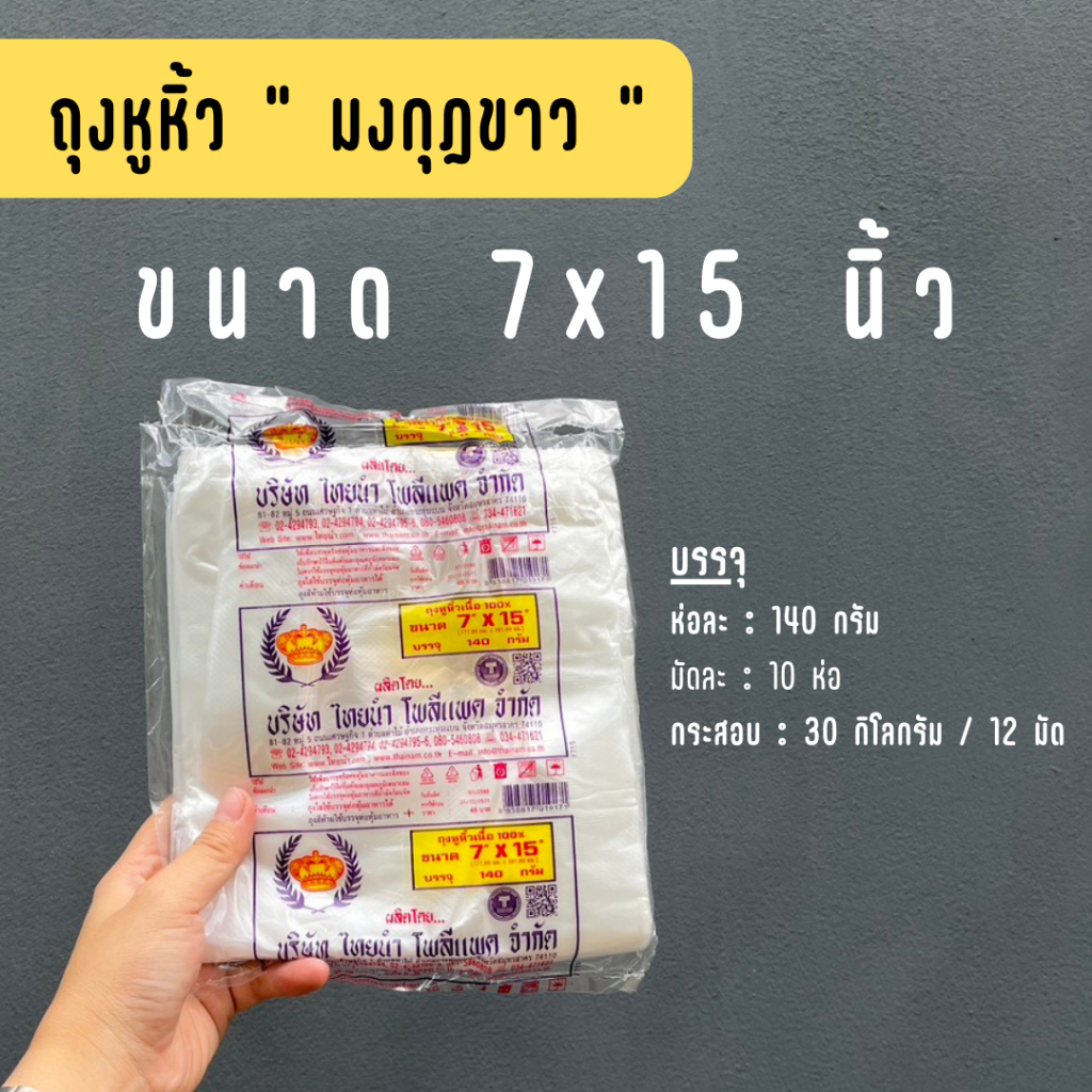 [ยกกระสอบ] ถุงหิ้วพลาสติก บาง ตรามงกุฏ 7x15 นิ้ว - 12 มัด