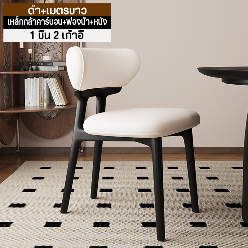 🔥พร้อมส่ง🔥เก้าอี้ทานอาหาร เก้าอี้ เก้าอี้ไม้เนื้อแข็ง 【1 ชิ้น 2 เก้าอี้】สไตล์นอร์ดิก โครงเหล็กคาร์บอน pkf