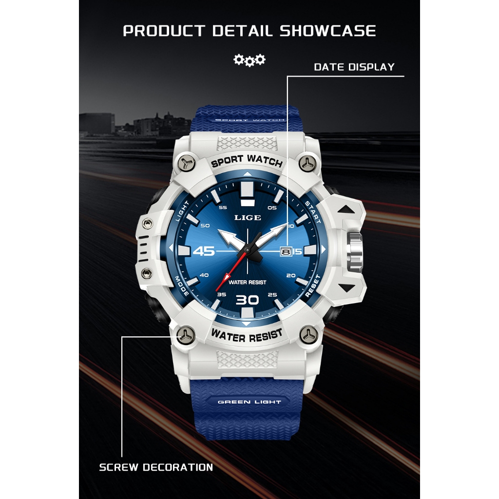 LIGE นาฬิกาผู้ชายกีฬาอิเล็กทรอนิกส์มัลติฟังก์ชั่นกันน้ํา LED นาฬิกาแฟชั่นผู้ชายนาฬิกาปลุก