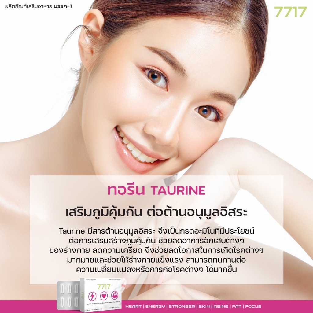 ทอรีน 7717 ( 8 กล่อง ) อะมิโนย่อยไขมัน ต้านอนุมูลอิสระ ยืดอายุเซลล์ กำจัดไขมันสะสม บูสต์พลังงาน บำรุงเซลล์ ผิวใสเด้ง