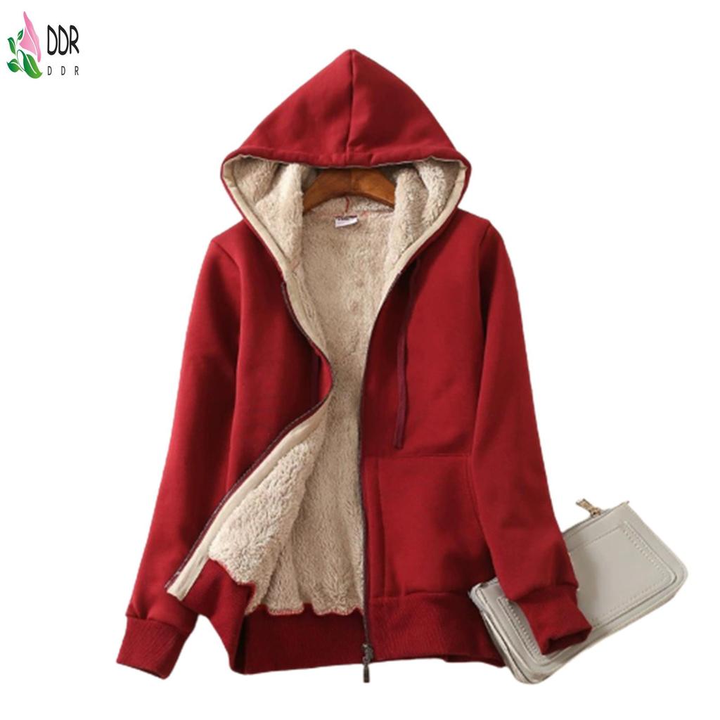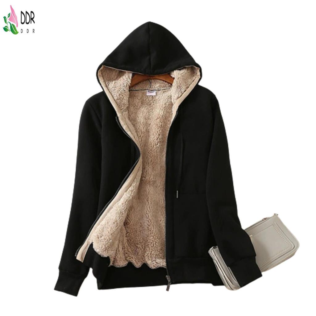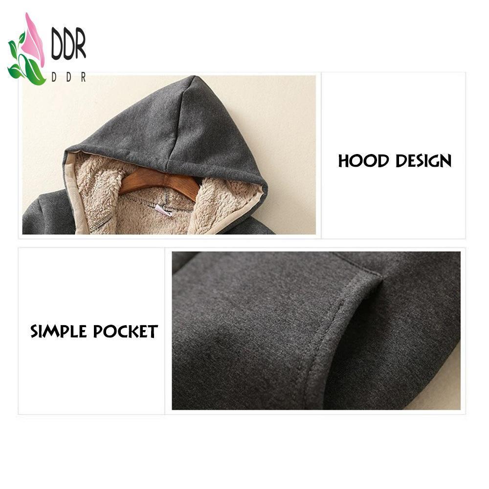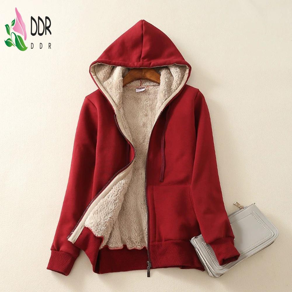 เสื้อแจ็คเก็ตหนากันหนาวสำหรับผู้หญิง พร้อมฮู้ดและซิปรอบคอ ดีไซน์มีกระเป๋าหน้าเปิดซิป