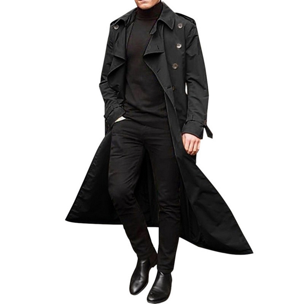 Trench Coat Men Streetwear Windbreaker Trenchcoat Men Solid Business Casual Loose Long Coat