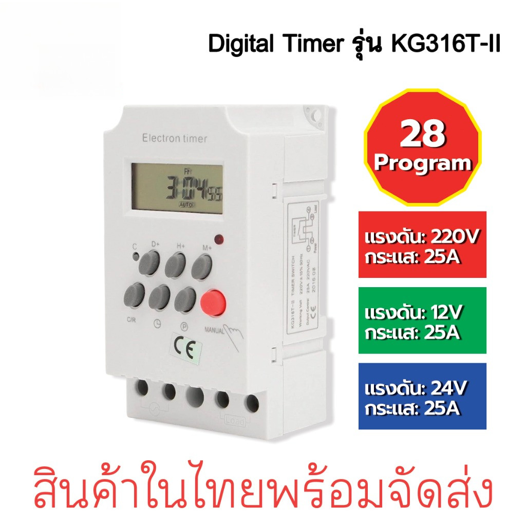 Timer ตั้งเวลา 220V KG316T -ll Timer Switch 220V 25A นาฬิกา เครื่องตั้งเวลา เปิด-ปิด อุปกรณ์ไฟฟ้า อัตโนมัติ ทามเมอร์