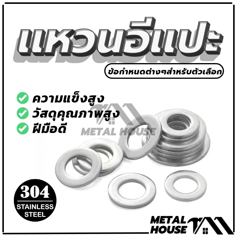 แหวนรองน็อต แหวนรอง สแตนเลส 304 คุณภาพสูง 12 ตัวเลือก (พร้อมส่ง)