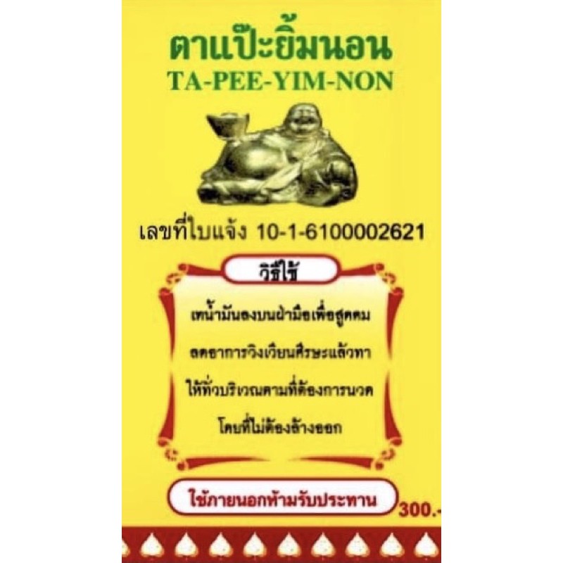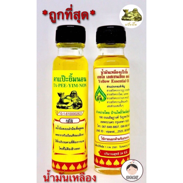 น้ำมันเหลือง ตาแป๊ะยิ้มนอน หรือตาแป๊ะถือทอง ขนาด 20 ml. #น้ำมันนวด พกพา กลิ่นหอม แก้ปวดเมื่อย