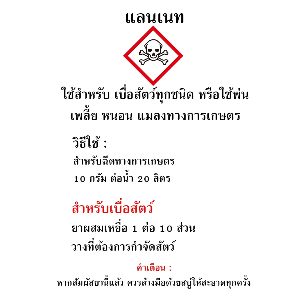 (ใช้ทำเหยื่อ) แลนเนท ของแท้ ยาเบื่อกำจัดสัตว์ทุกชนิด แลนเนต 100กรัม ไม่มีสี ไม่มีกลิ่น ผงสีขาว หมา แมว ตัวเงิน