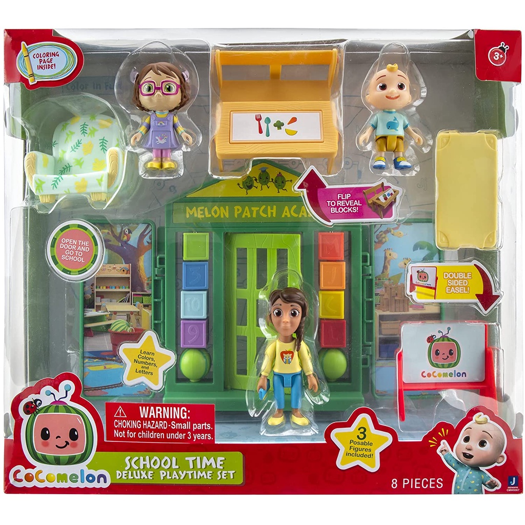 Cocomelon School Time Deluxe Playtime Set ของเล่น ชุดโรงเรียน มาพร้อมของตกแต่งอีก 5 ชิ้น สำหรับเด็ก 3 ขวบขึ้นไป