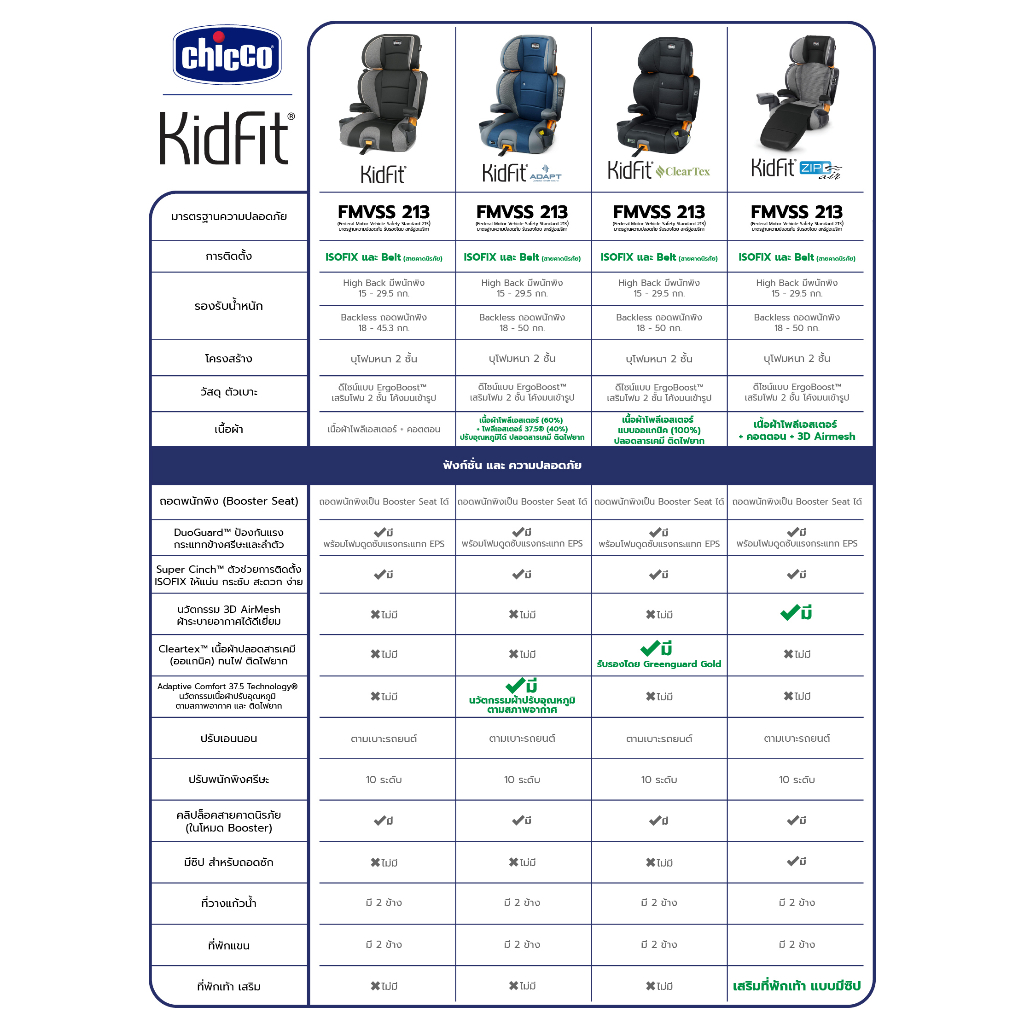 Chicco Kidfit Cleartex Car Seat คาร์ซีทเด็กโตรองรับ Isofix,Belt สามารถถอดพนักพิงออกเป็นเบาะ Booster ได้