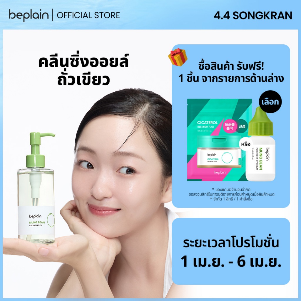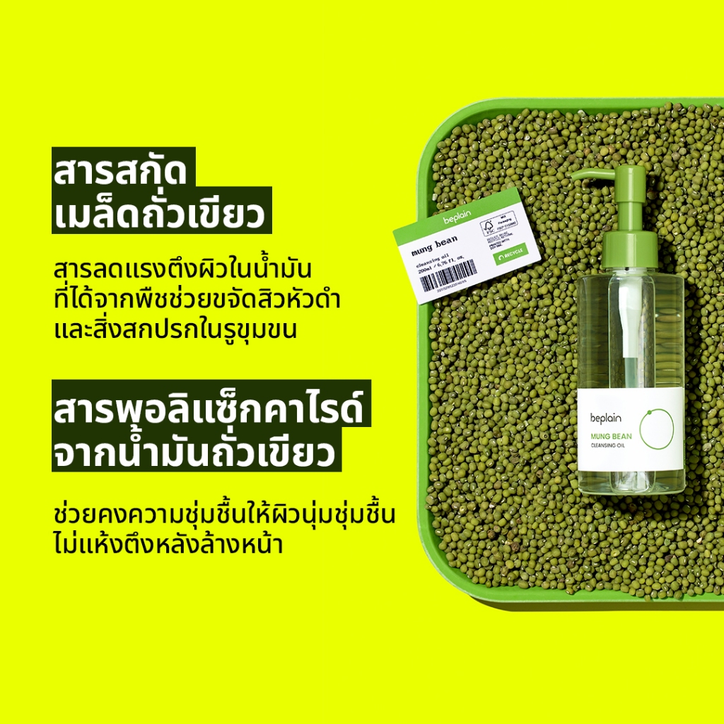 Beplain Mung Bean คลีนซิ่งออยล์ถั่วเขียว 200ml | เนื้อบางเบาเหมือนน้ำ ช่วยละลายสิวหัวดำ | MUNG BEAN CLEANSING OIL