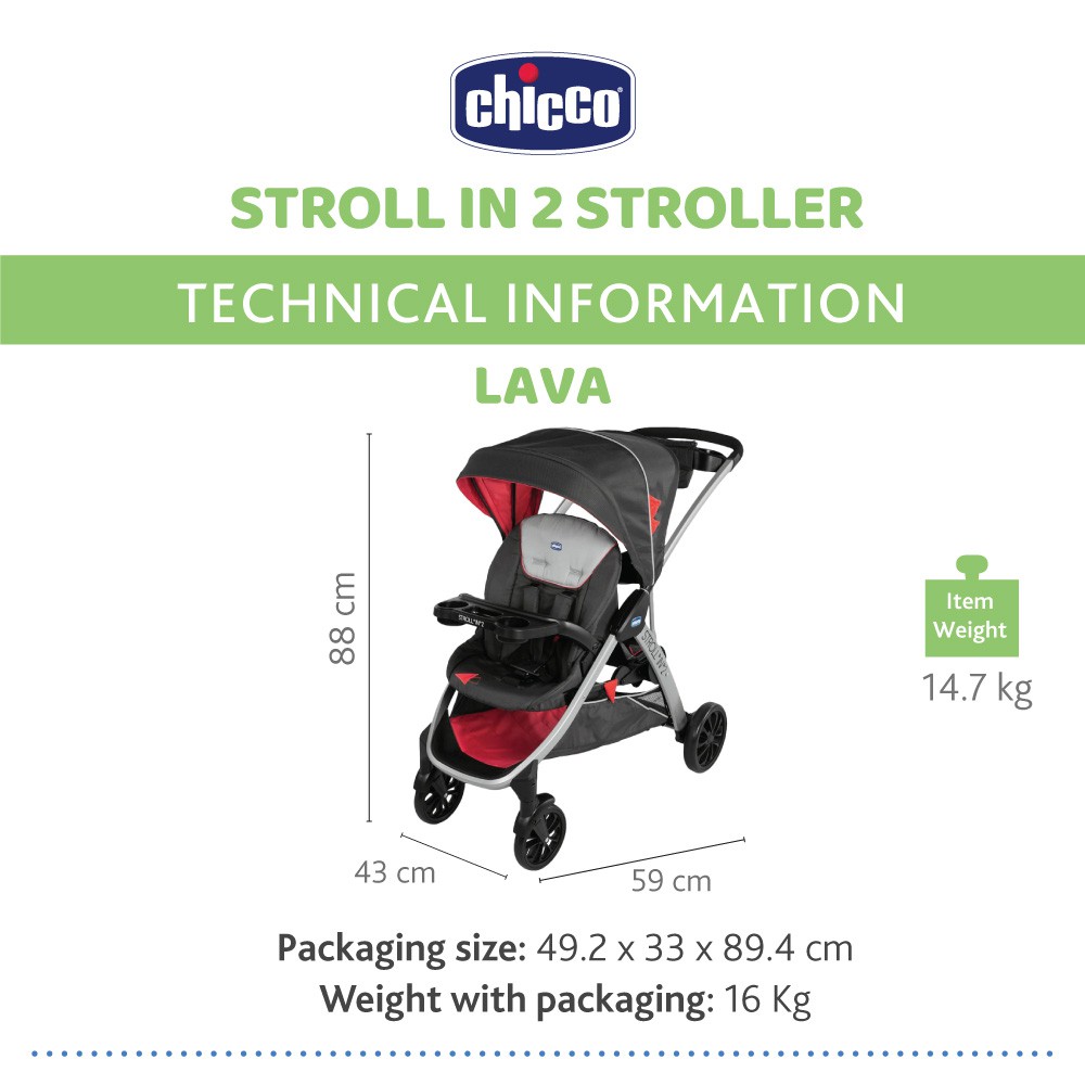 CHICCO Stroll In 2 Stroller - Lava รถเข็นพี่น้อง 2 นั่ง ใช้งานได้หลายรูปแบบ