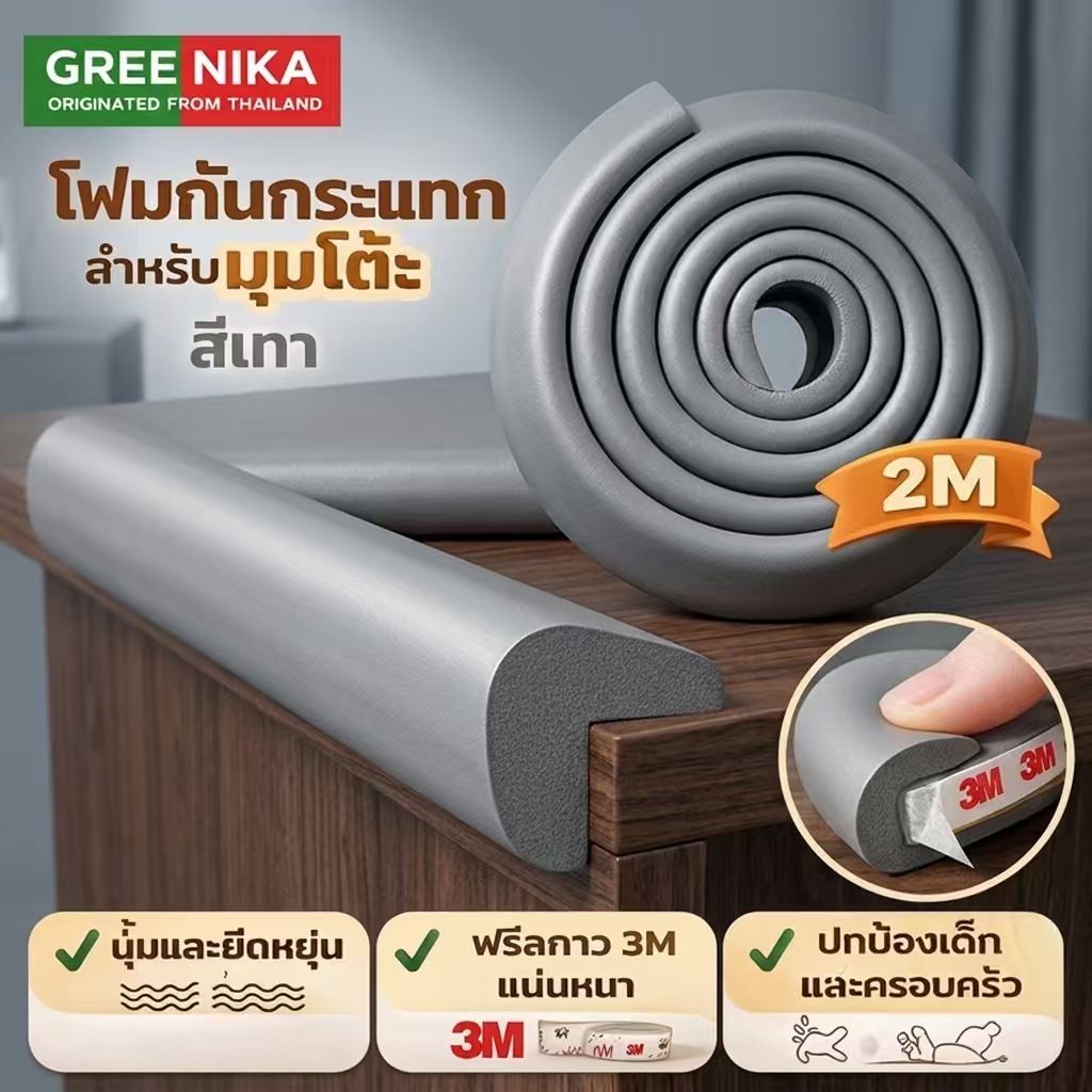 GREENIKA 10 เมตร โฟมกันกระแทกขอบโต๊ะเด็ก แผ่นกันขอบโต๊ะ แบบยาว หนา นิ่ม กันเด็กกระแทก ตัดได้ ติดตั้งง่าย วัสดุรักษ์โลก ปลอดภัย ไร้สารพิษ