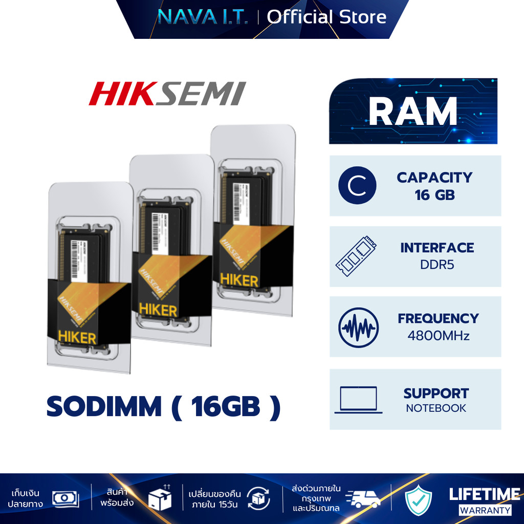 HIKSEMI RAM NOTEBOOK DDR5 16GB 4800MHz SO-DIMM (HSC516S48Z1 16G) lifetime warranty