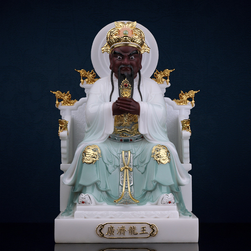 Fusheng Dongcai Shenlong Wuye รูปปั้นหินอ่อนสีขาวเลียนแบบสำหรับใช้ในครัวเรือน Guangji Dragon King พระโพธิสัตว์และงานฝีมื