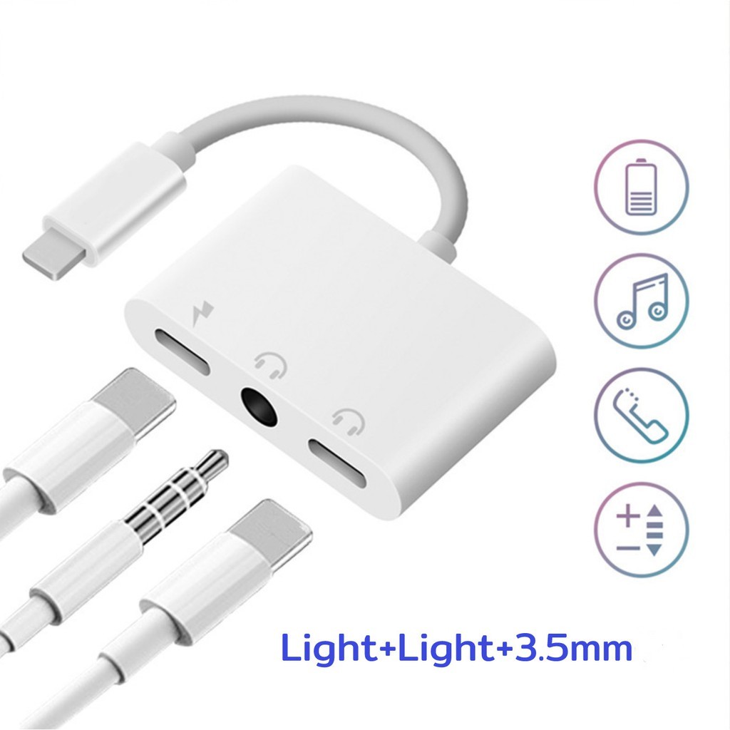 ตัวแปลงหูฟัง สายแปลงหูฟัง 3.5 mm ใช้ไมค์ โทร คุย 3in1 Light to Dual Light+3.5mm.