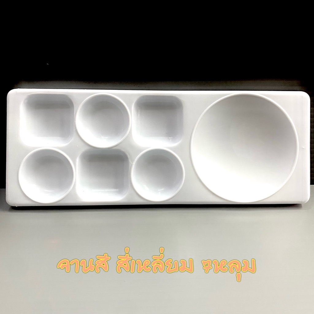 จานสี (1 ชิ้น) ถาดสีเหลี่ยม พลาสติก 12หลุม 24หลุม 7หลุม จานสี จานใส่สี สีขาว