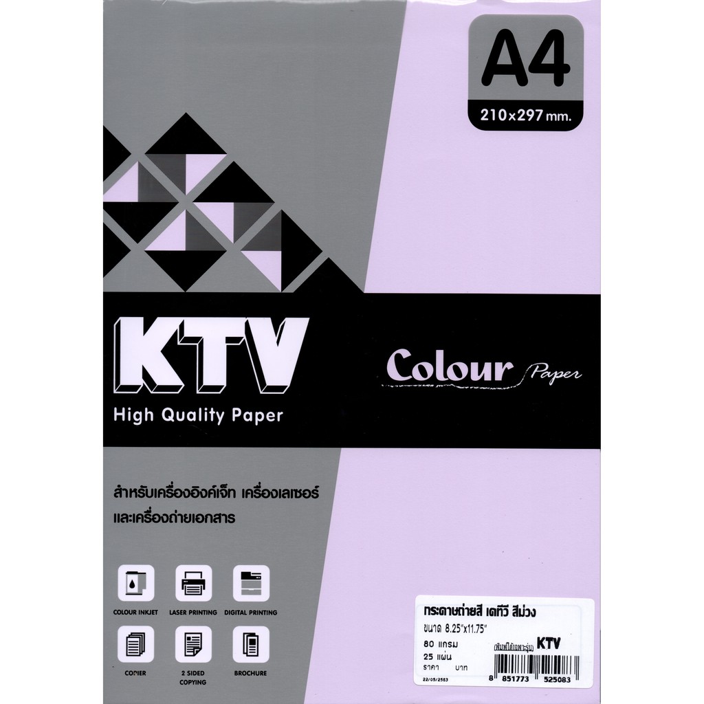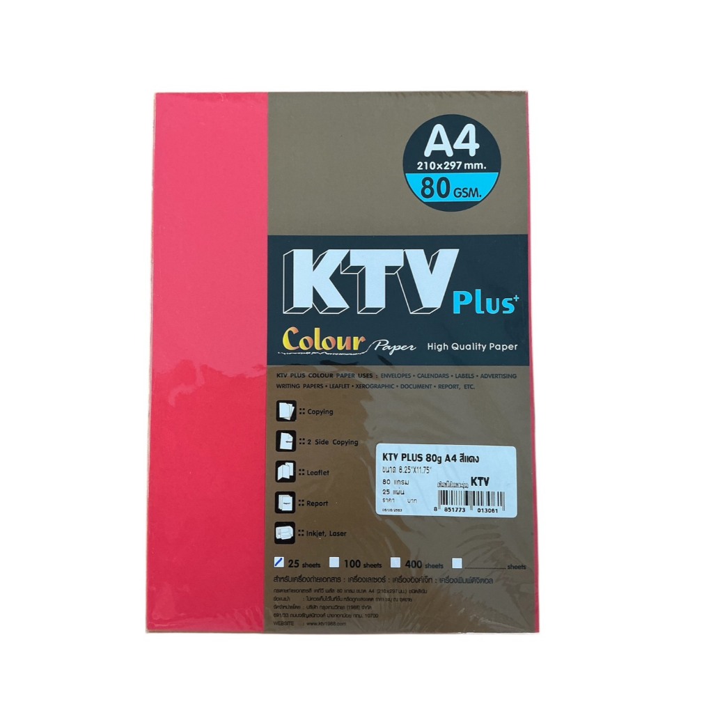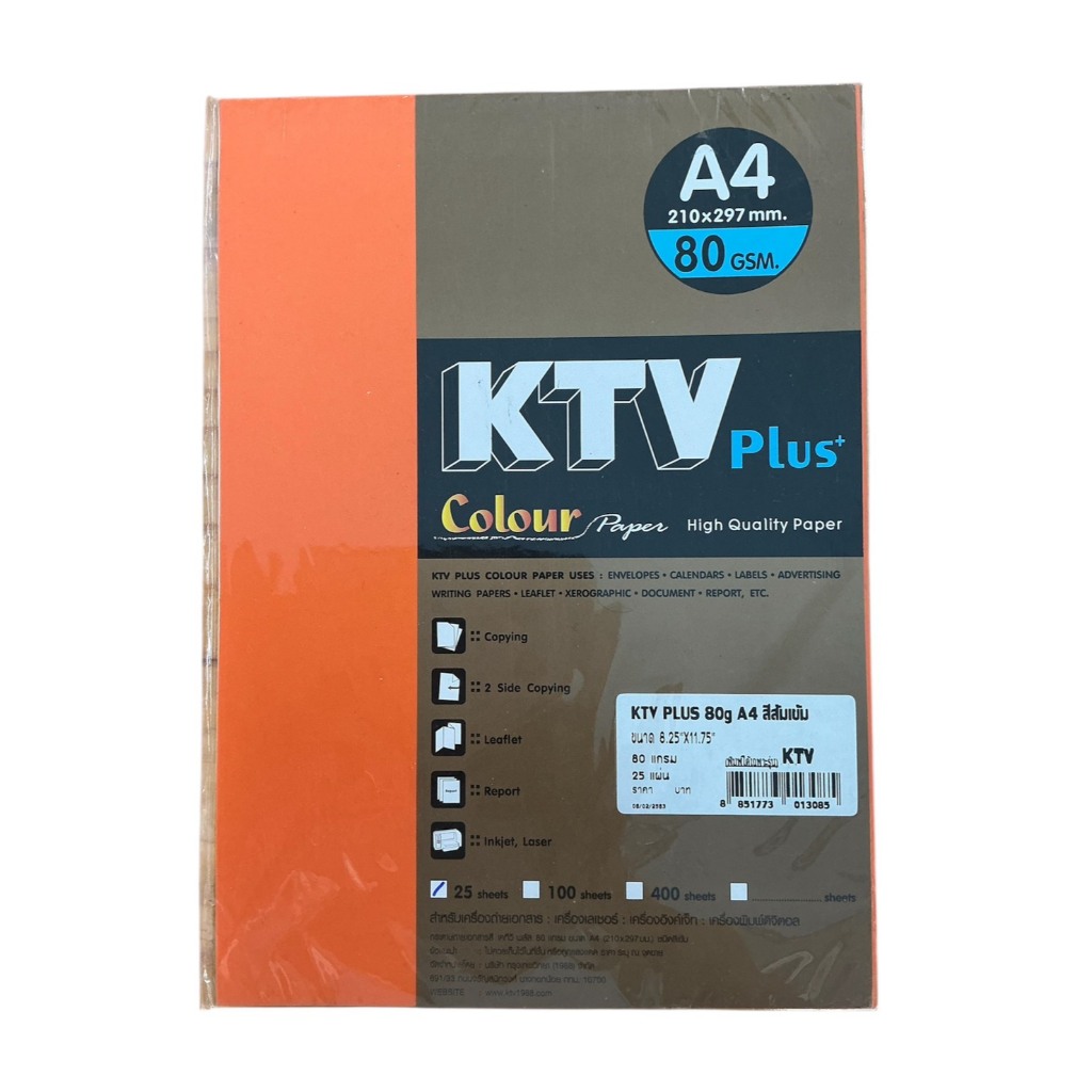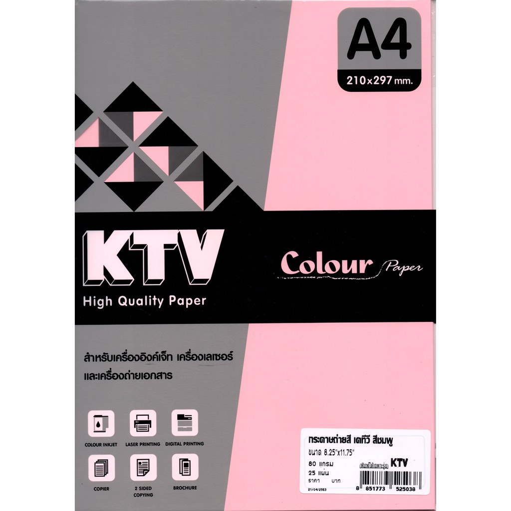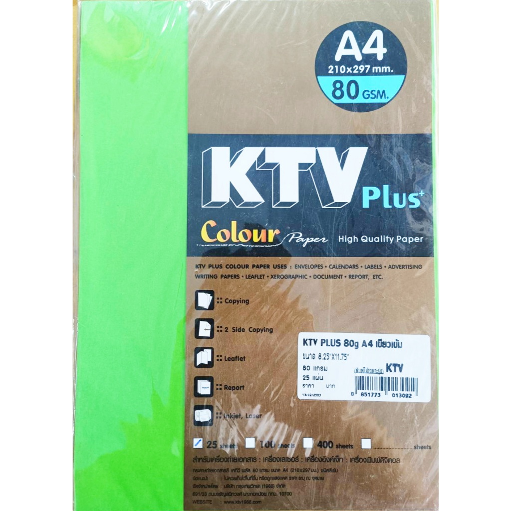 KTV กระดาษสี A4 กระดาษ ถ่ายเอกสารสี ขนาด A4/80 แกรม บรรจุ 25 แผ่น