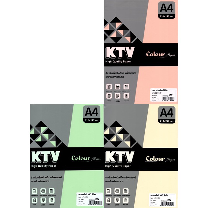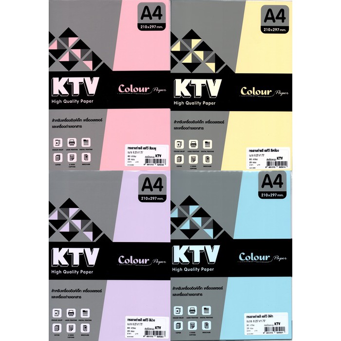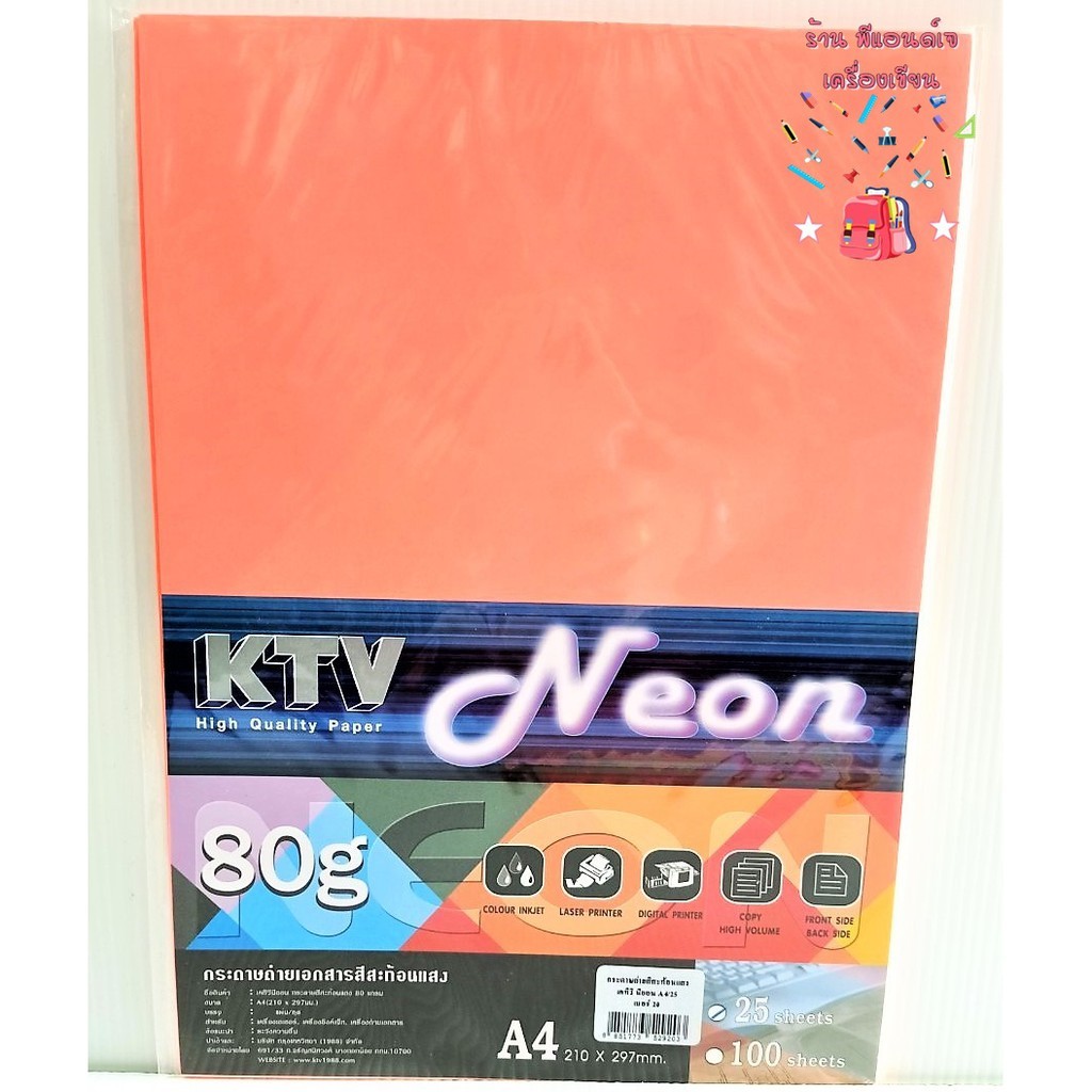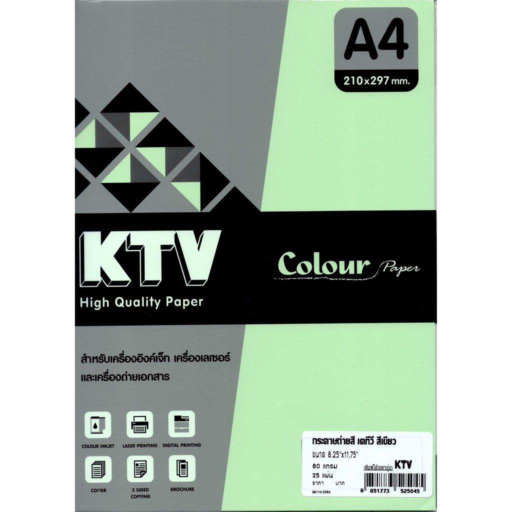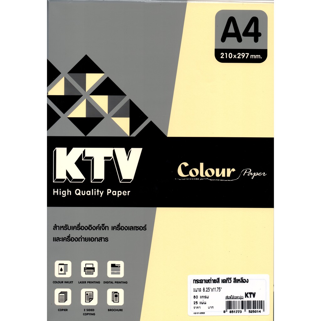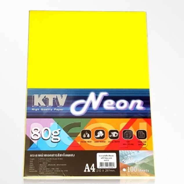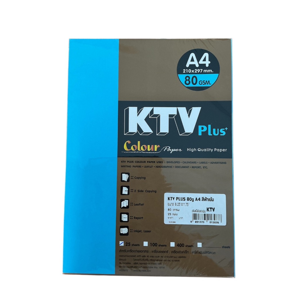 KTV กระดาษสี A4 กระดาษ ถ่ายเอกสารสี ขนาด A4/80 แกรม บรรจุ 25 แผ่น