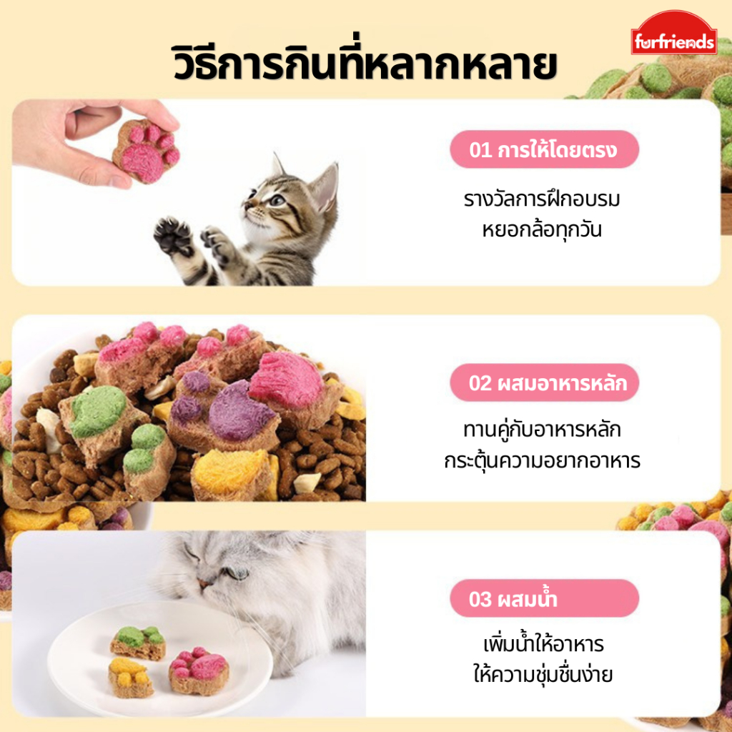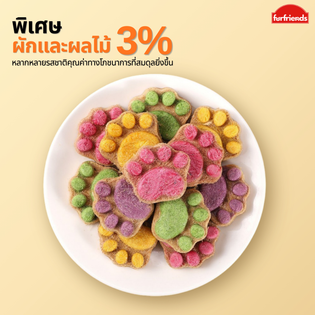 furfriends ฟรีซดรายอุ้งเท้าแมว คุกกี้แมว ขนมแมว ขนมแมวฟรีซดราย ขนมสุนัข อกไก่แท้ ขนมสัตว์เลี้ยง บำรุงขน ไม่แต่งสี
