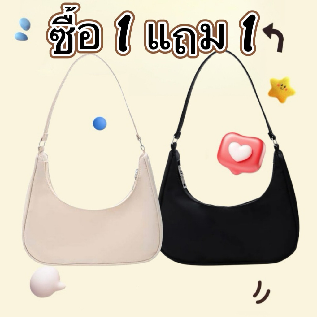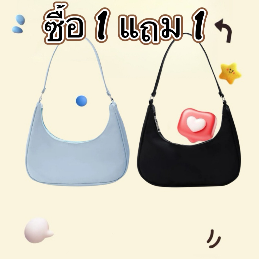 1แถม1กระเป๋าผู้หญิงกระเป๋าถือกระเป๋าสะพายข้าง กระเป๋าบาแกตต์ Baguette bag กระเป๋าครึ่งครงกลม