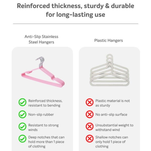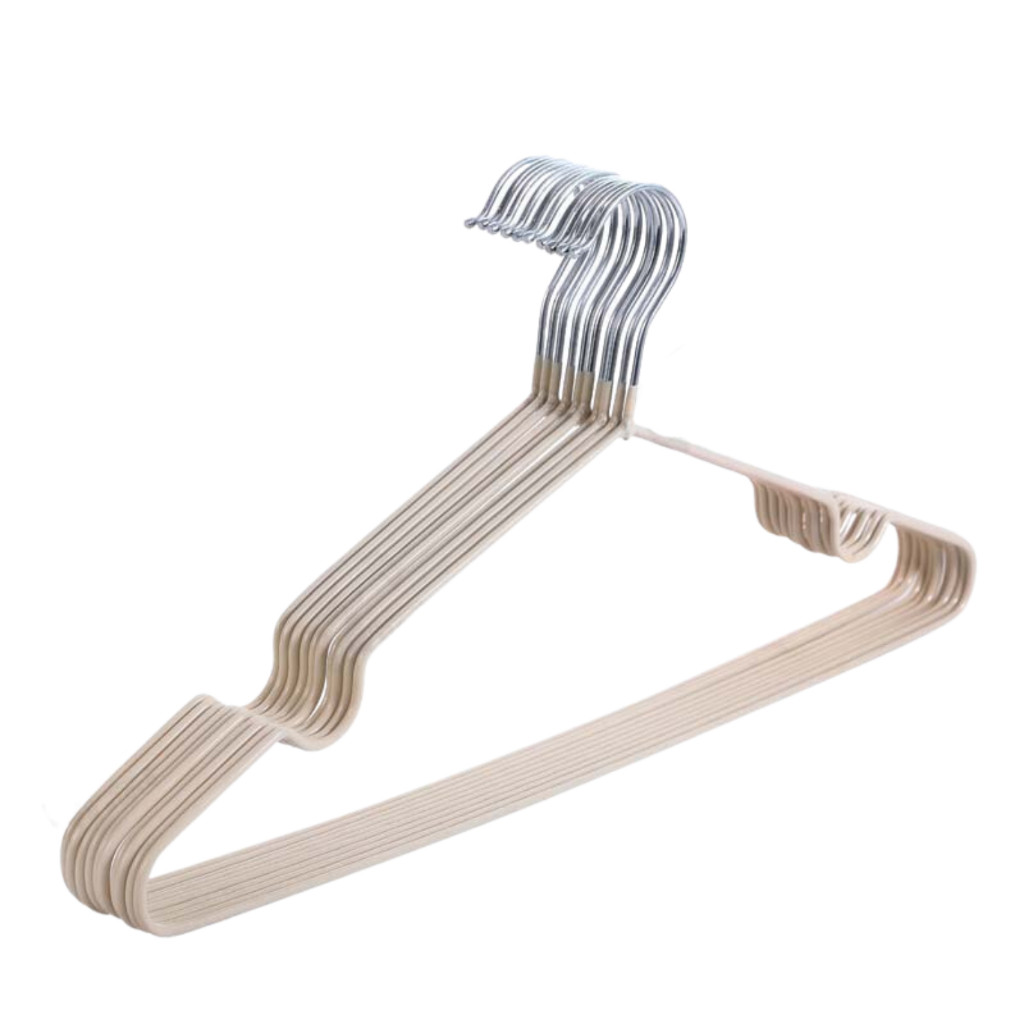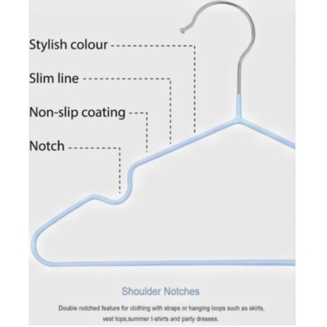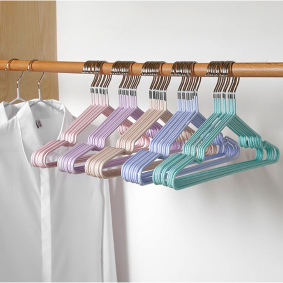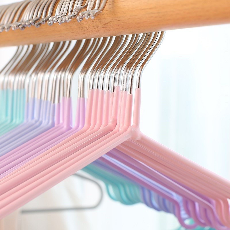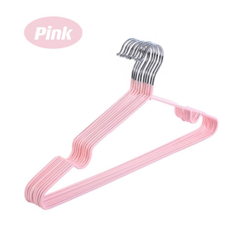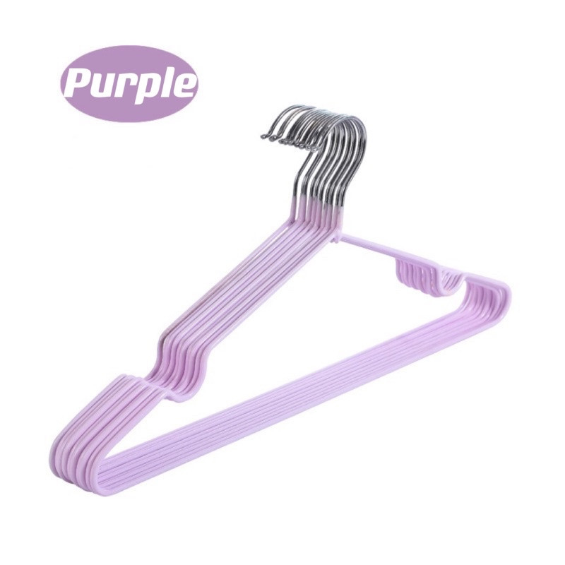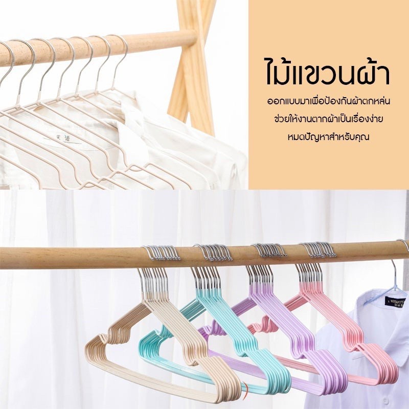 [10 ชิ้น] ไม้แขวนเสื้อ PVC สำหรับใช้ในบ้าน ตากเสื้อผ้า ไม้แขวนสแตนเลส เคลือบซีลีโคนกันลื่น ไม้แขวนผ้า 2 ขนาด สีพาสเทล
