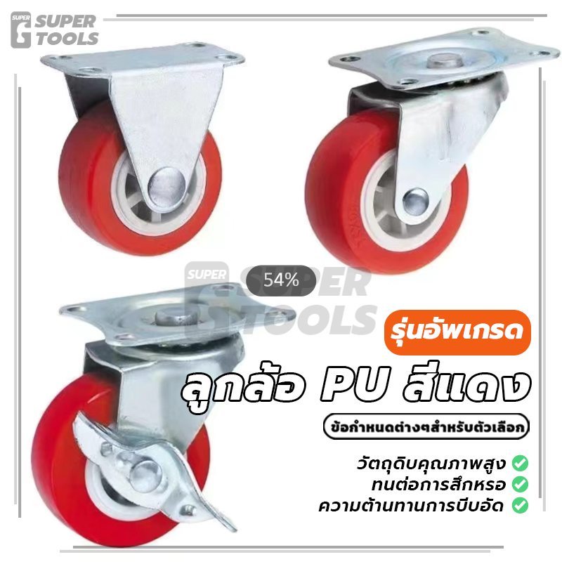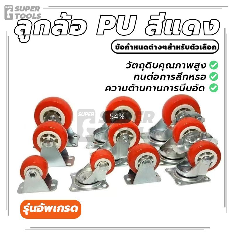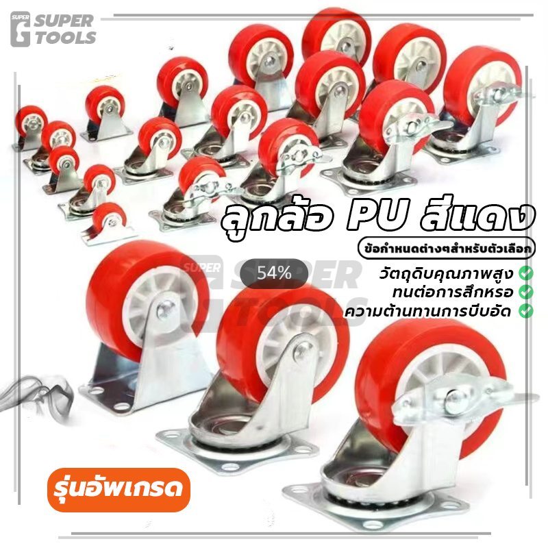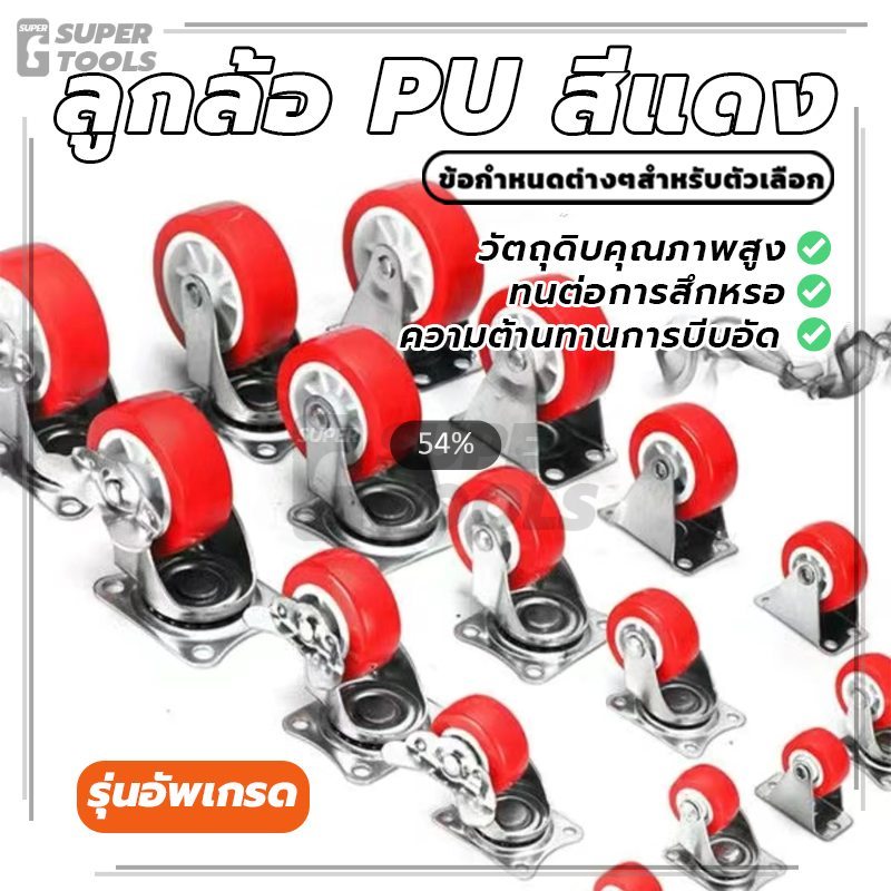 ลูกล้อ PU สีแดง ล้อยูรีเทน มีหลายขนาด เสียงเงียบ ทนทานสูง แข็งแรงและทนทาน ทนต่อการสึกหรอ ทนต่อแรงกระแทก
