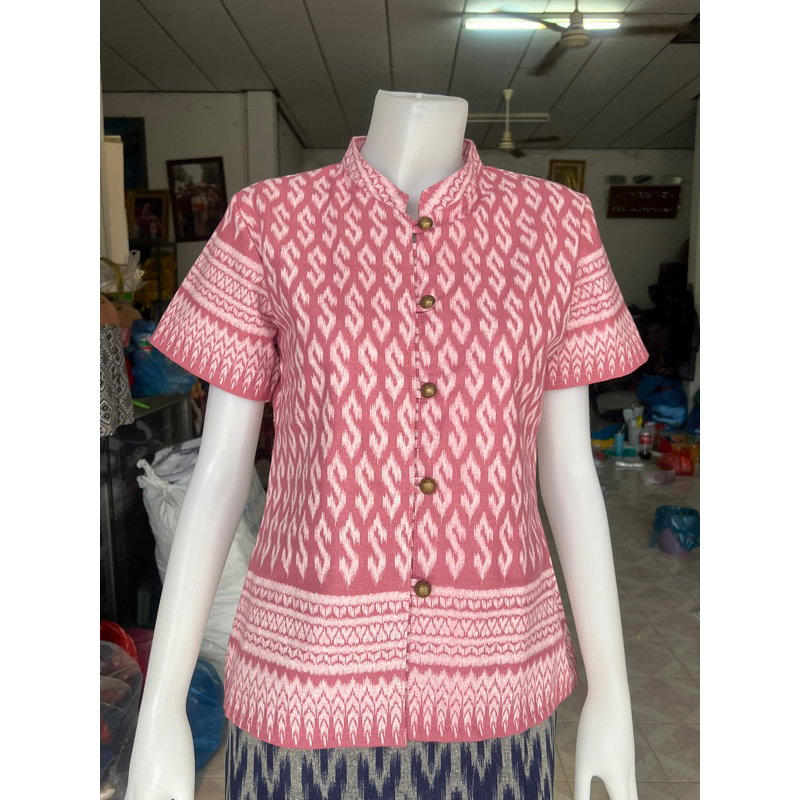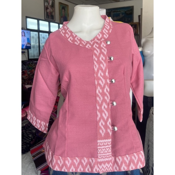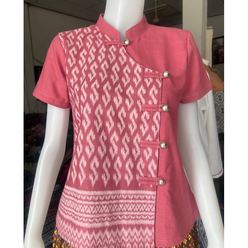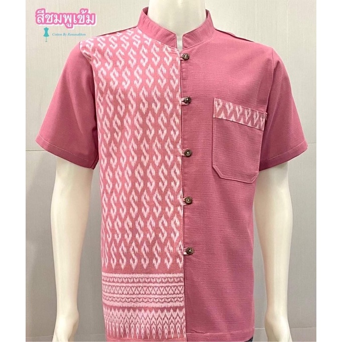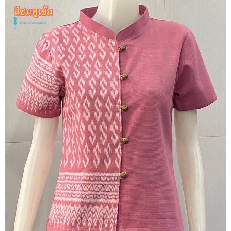 เซ็ตคู่ผ้าฝ้ายสีชมพูแต่งลายขอพระราชทาน