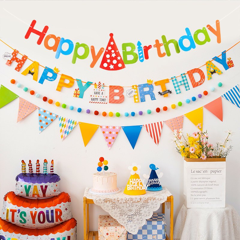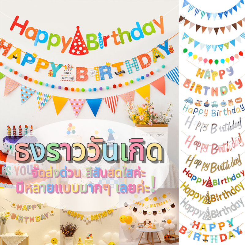 สีสันสดใสค่ะ ธงวันเกิดแบบเยอะมาก ราคาถูก ธงตกแต่งปาร์ตี้ ตัวอักษร HAPPY Birthday ธงวันเกิด ธงราววันเกิด ธงราว