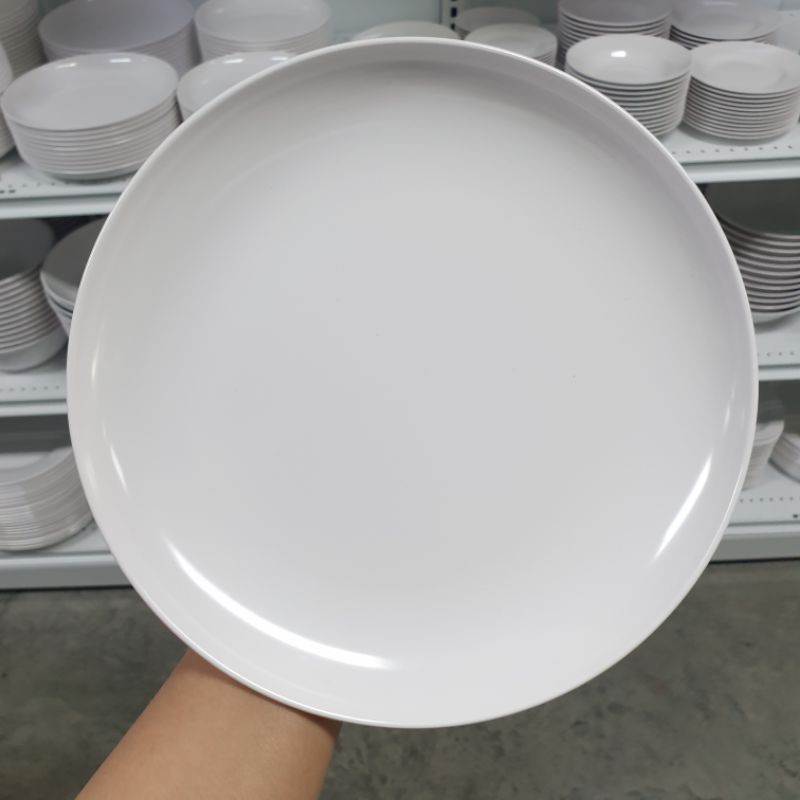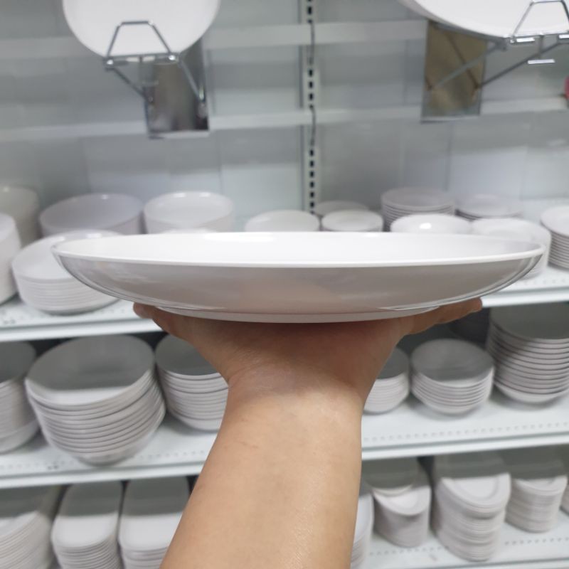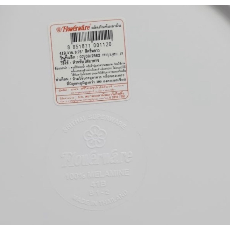 จานเมลามีนใบบัวสีขาวขนาด9.75นิ้ว(1ใบ)ตราดอกไม้