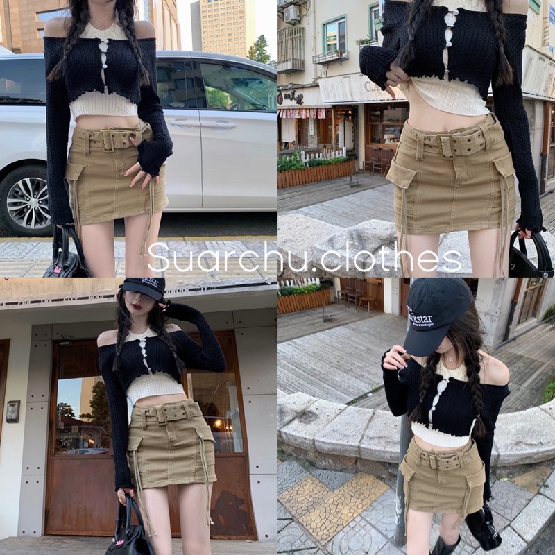 กระโปรงยีนส์ กระโปรงทรงเอ ทรงcargo มีกระเป๋า เข็มขัด ดีเทลสายตรงกระเป๋าสุดเก๋ งานป้ายK❄️พร้อมส่ง❄️-684