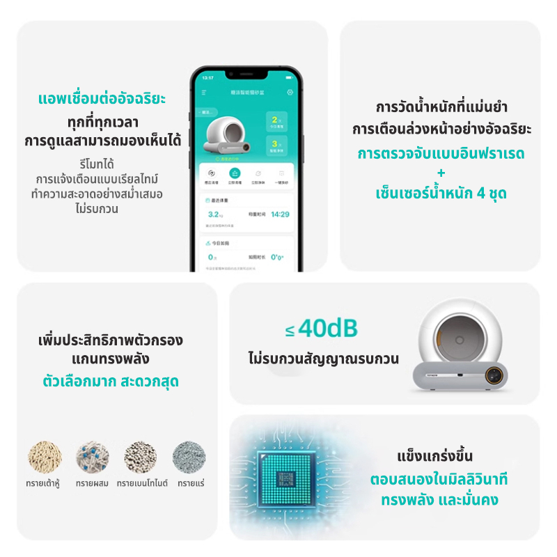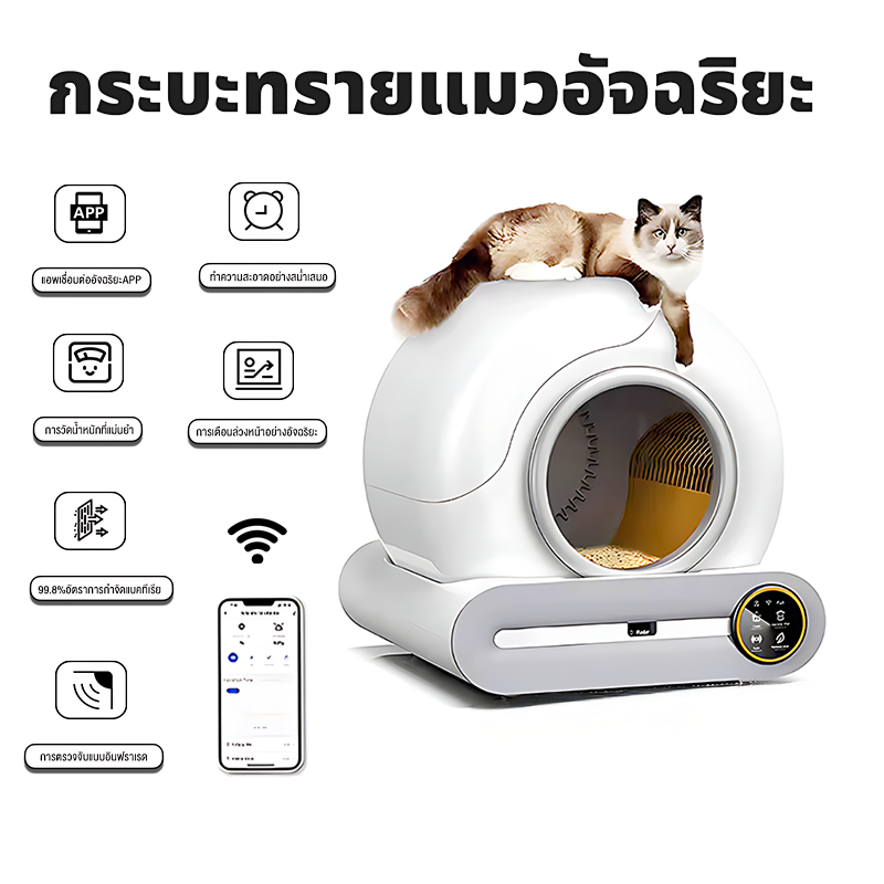 Automatic cat litter box รีโมทคอนโทรลโทรศัพท์มือถือ ทำความสะอาดเพียงคลิกเดียว กระบะทรายแมวอัตโนมัติ กระบะทรายแมว